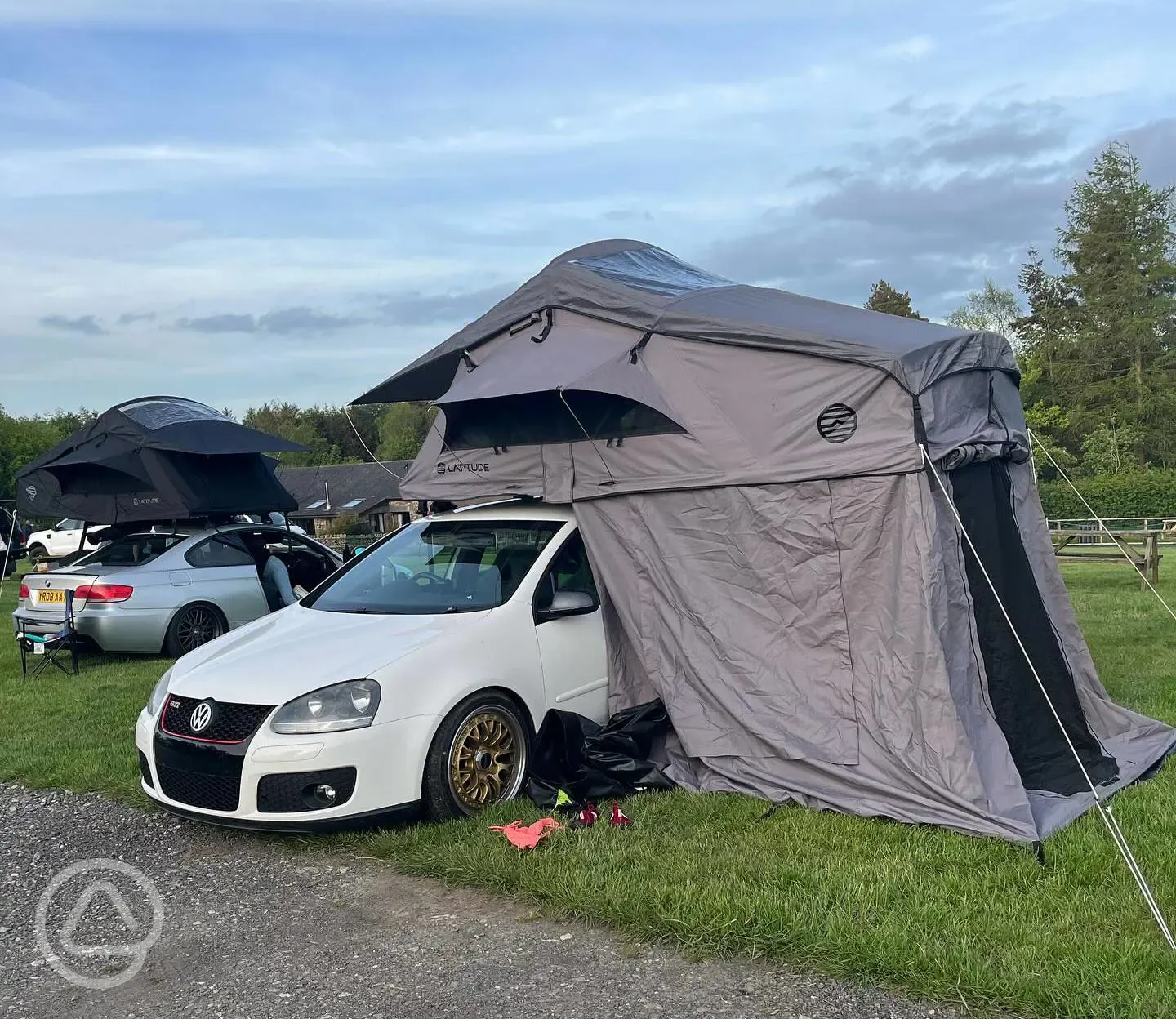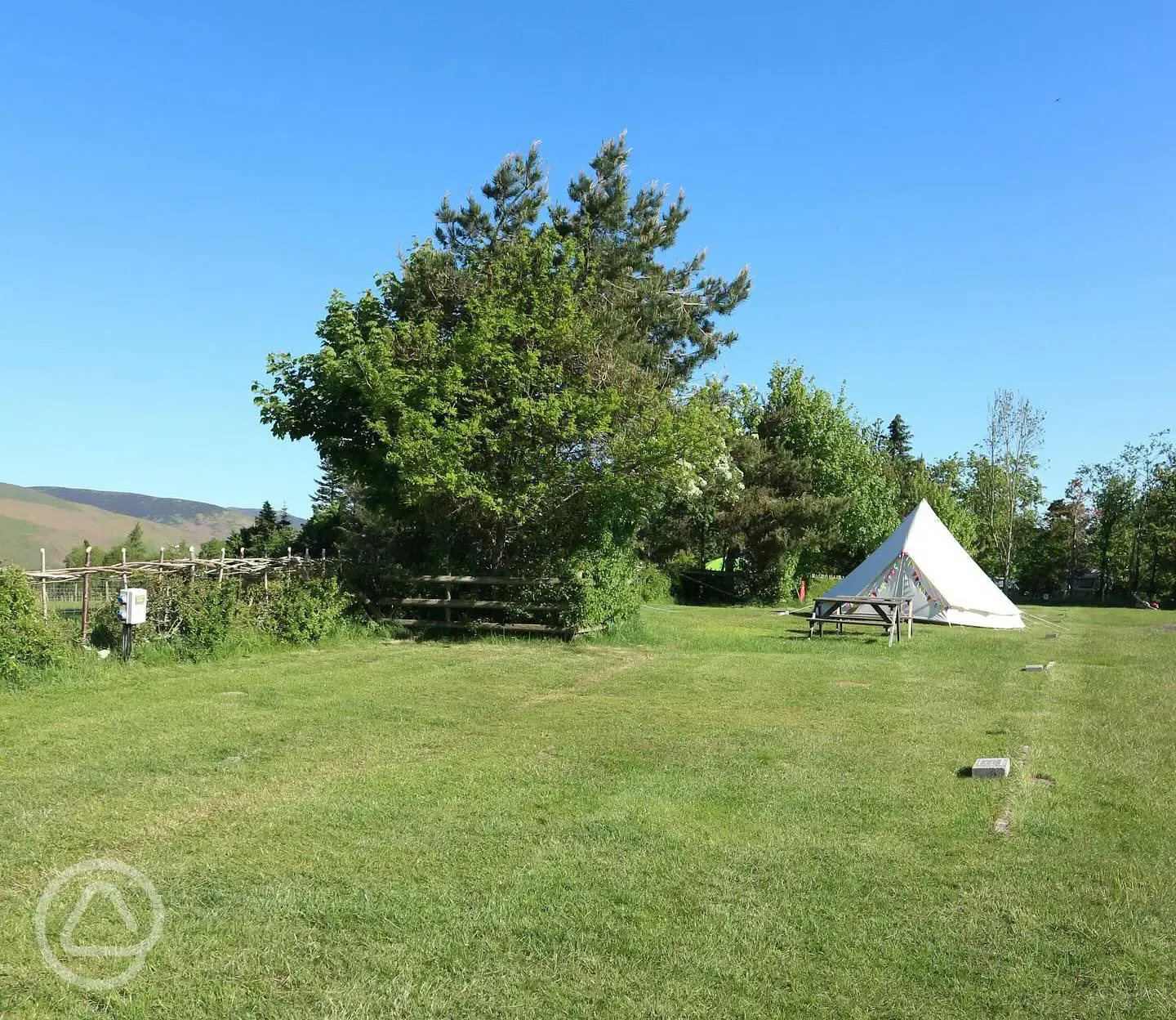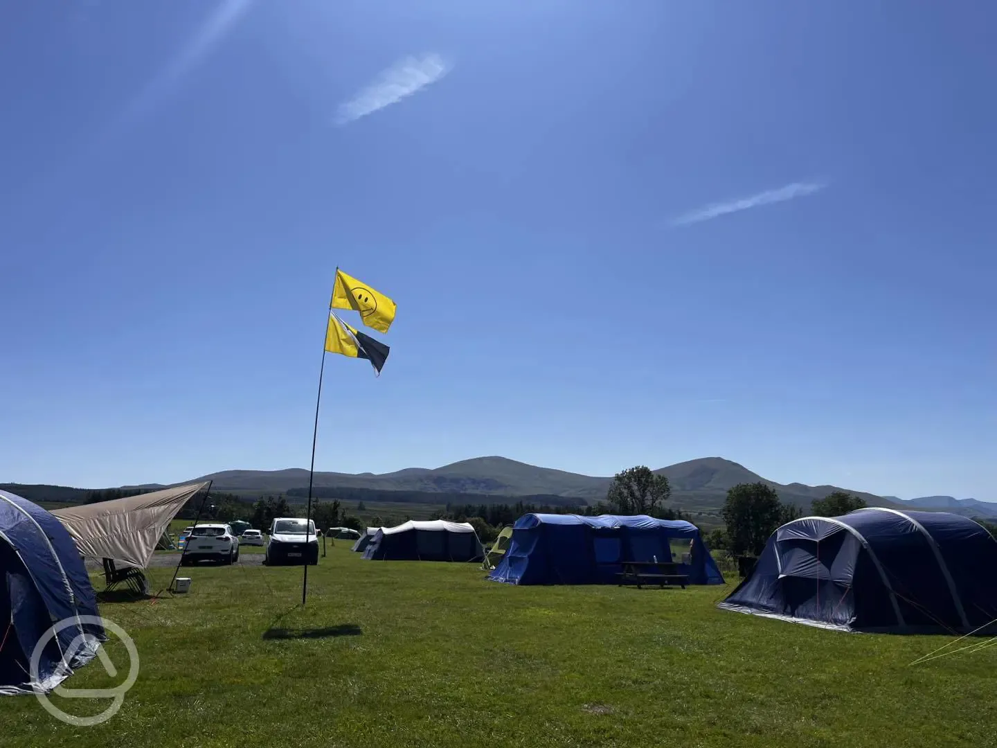 Grass pitches for tents only, with optional 10 amp electric hook up.