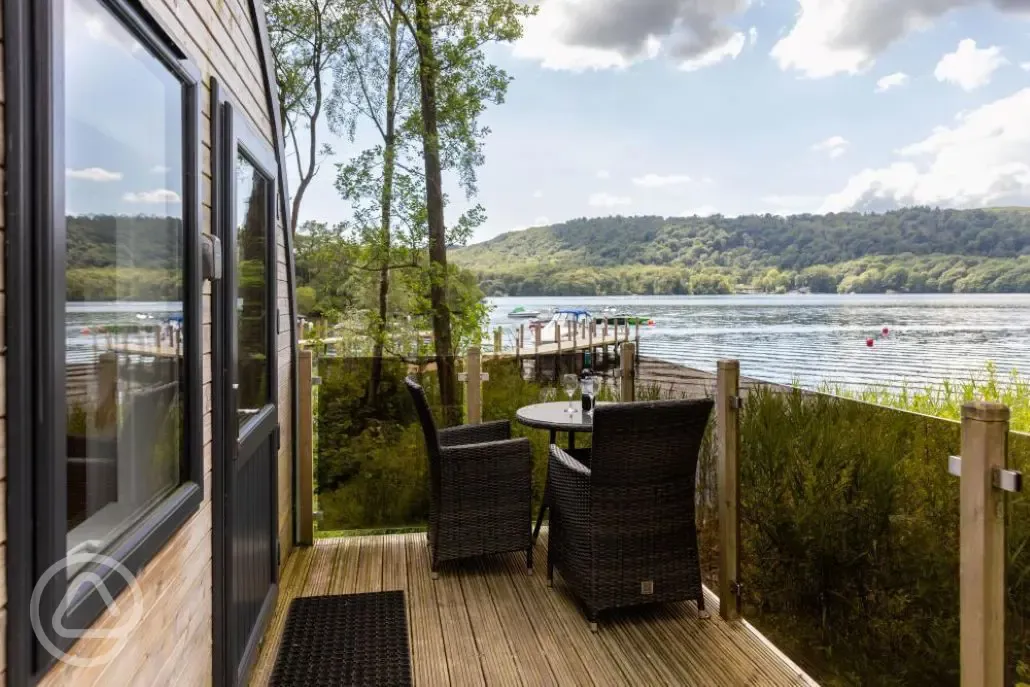 Family and dog friendly pods in the Lake District at the edge of Windermere. Five minutes to Bowness-on-Windermere.