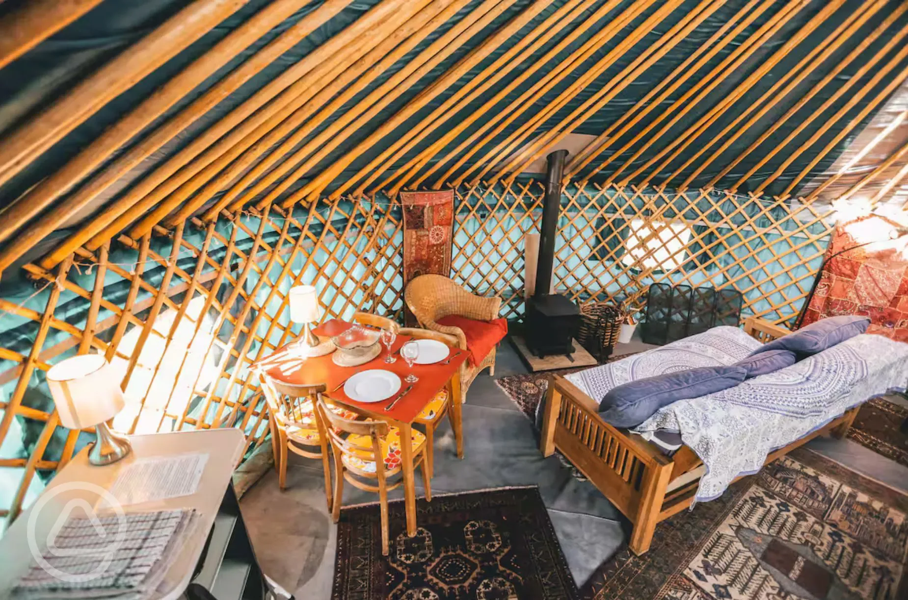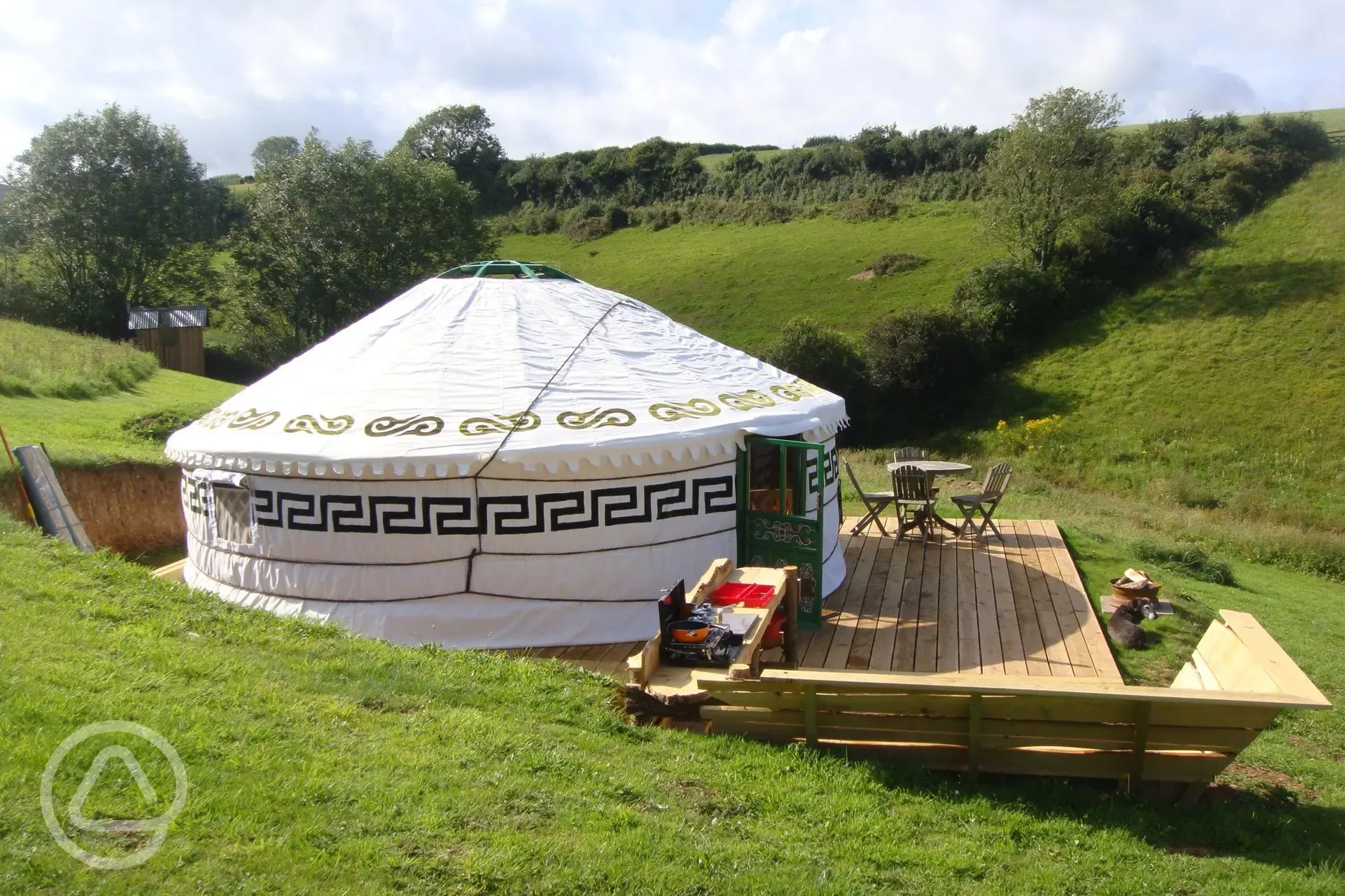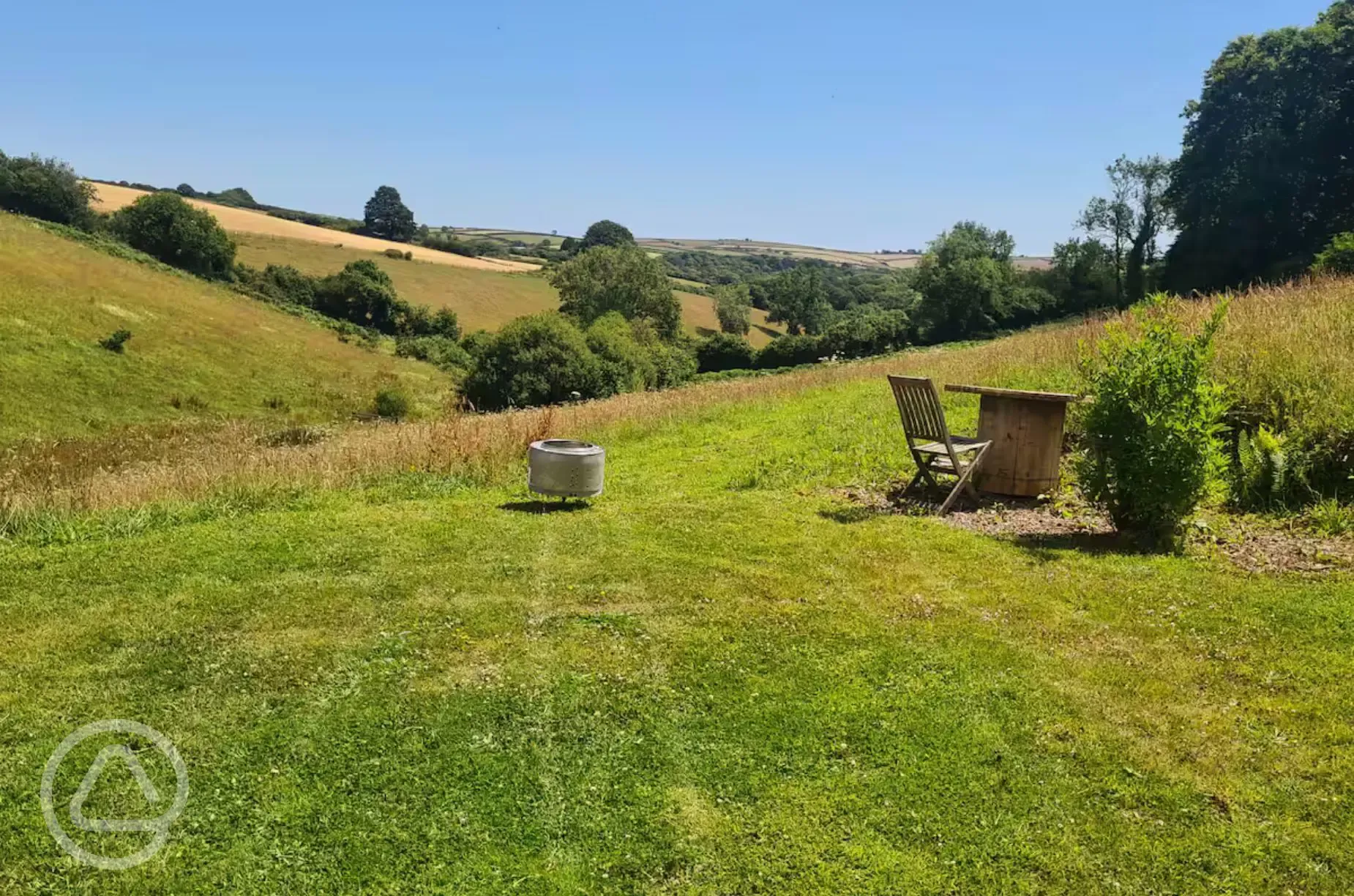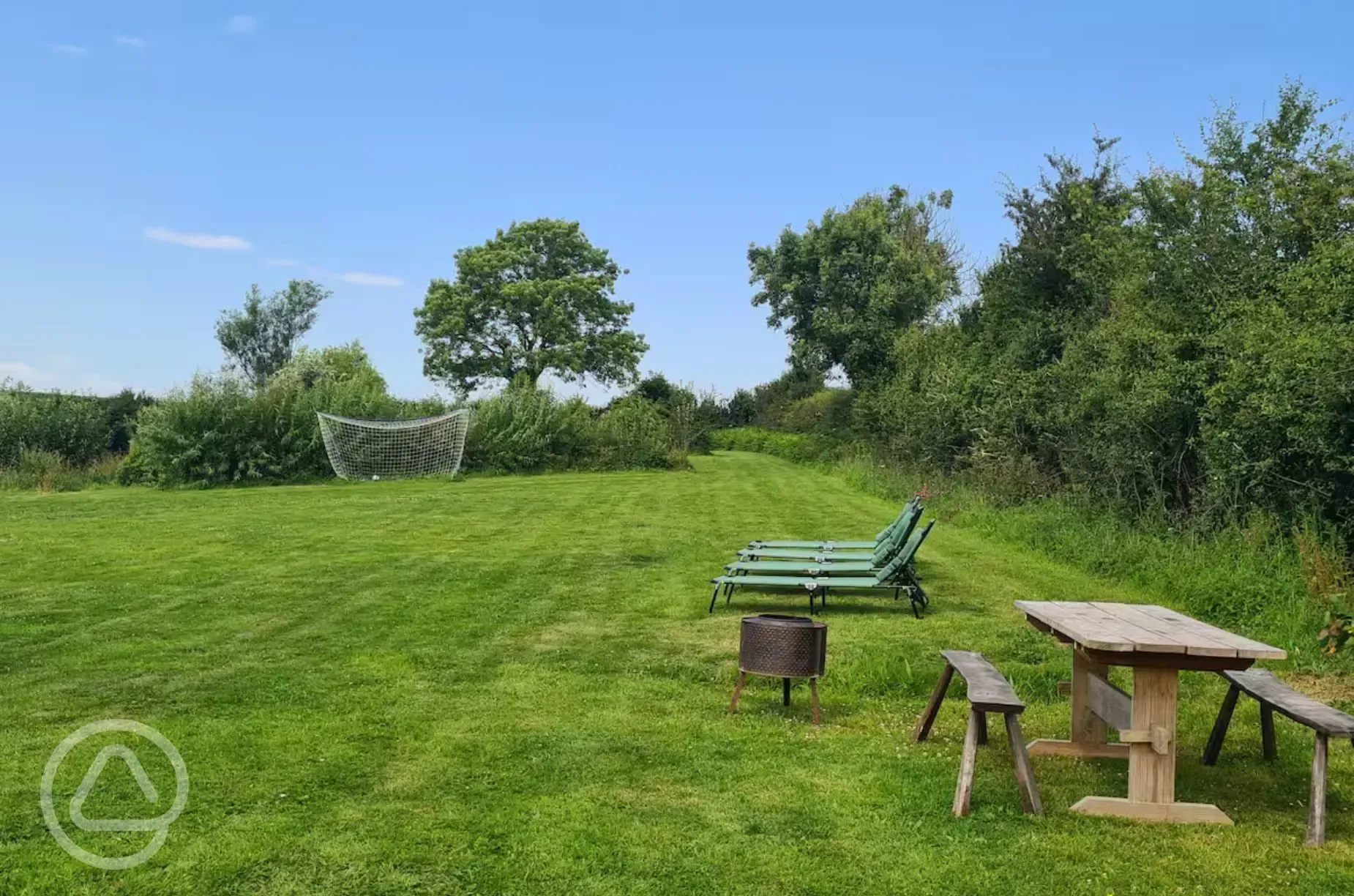 The site boasts 24 acres of land, including a pony paddock, bluebell woodland and the 12 acre valley. Guests are welcome to roam the land too! Within the 12 acre valley, you'll find five level, mowed pitches for tents where you can feel the freedom of wild camping. A wheelbarrow can be provided for guests to transport their camping gear. Each pitch is unique in location, has a picnic table and fire pit. You will never be pitched next to another camper as all of the pitches are many meters apart. There is a long drop toilet in each of the valley fields and a solar shower in one. Separate from the valley, the site offers a campervan pitch to suit a small campervan with electric hook up and a camping paddock for family groups up to 6 which can take tents, caravans and campervans. All pitches come with picnic tables and fire pits. Or perhaps treat yourself to a stay in the fully furnished yurt. Inside, you can enjoy use of a comfy double bed, double futon sofa bed, wood burning stove as well as a kitchen and dining area. Wander outside, and you can relax in your own private garden with decking, a fire pit and a picnic table. The orchard garden by the farmhouse has a bathroom with two flushing toilets and a power shower. Outside is a gas stove and kettle alongside a sink for washing up. There are clotheslines for drying off wetsuits and clothes and a volleyball/badminton net with bats etc provided.