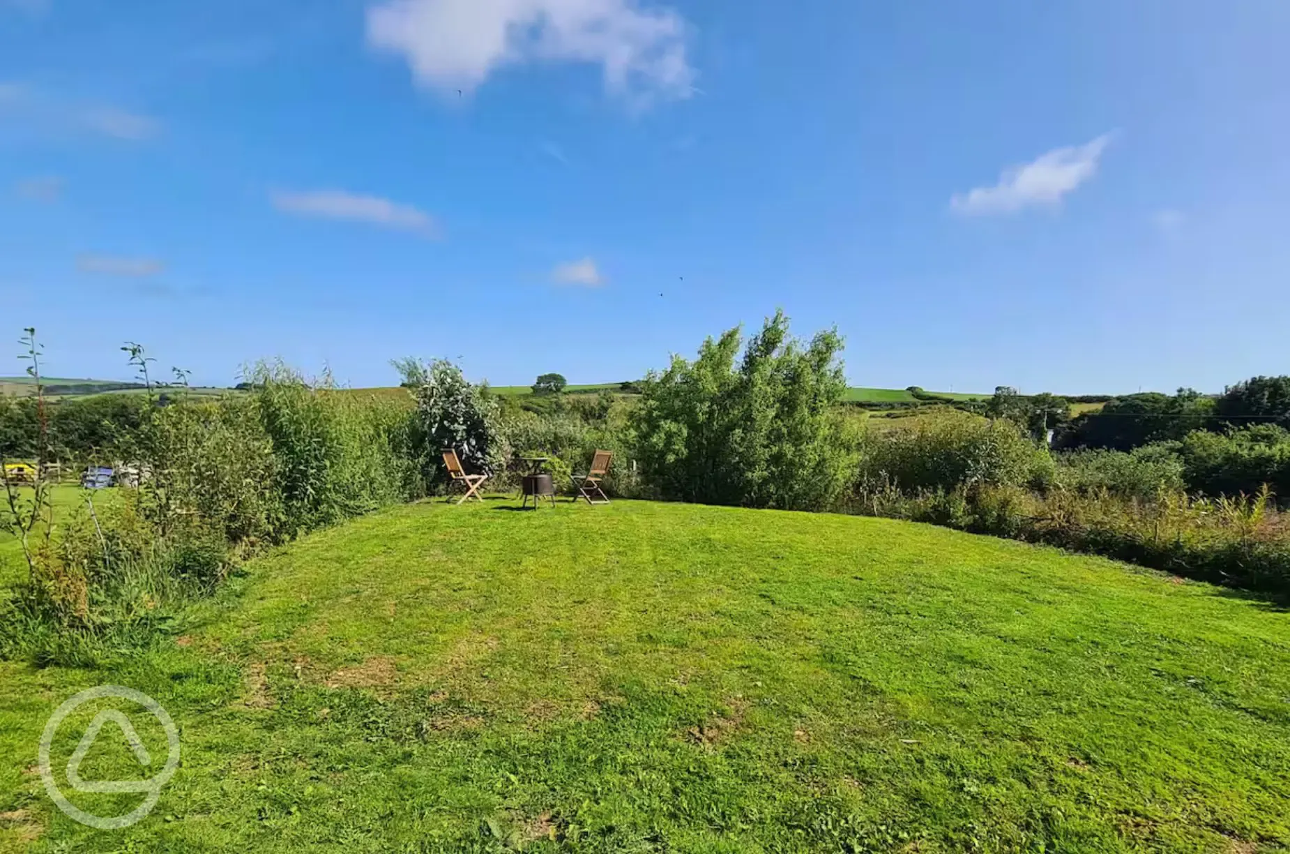 Summer, eco campsite with sea and cove views. Five minute walk to the beach, and a ten minute drive to Salcombe.