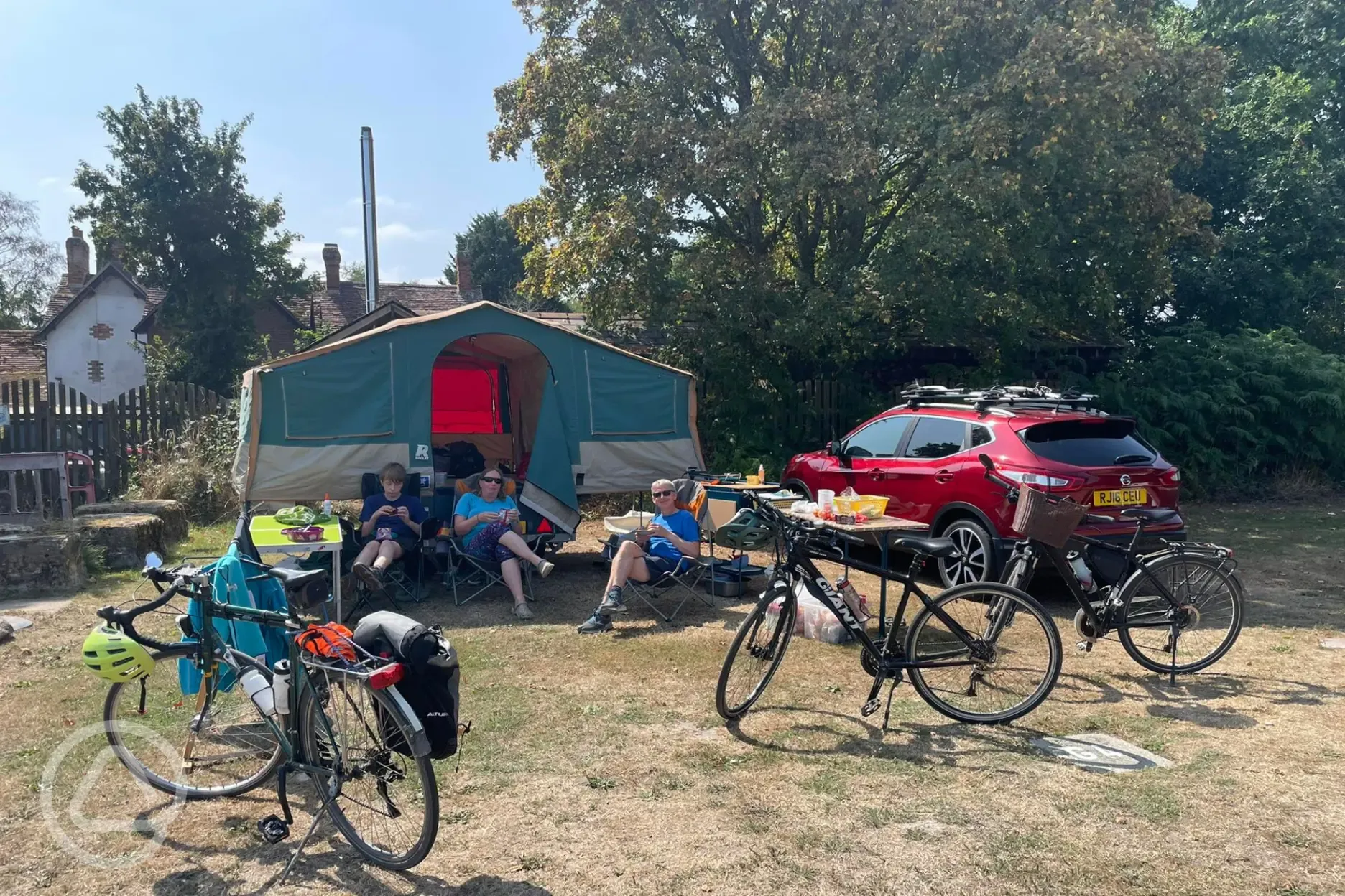 Located on the Dorset/Hampshire border with direct access to Moors Valley Country Park, this site is a great family-friendly base for a peaceful countryside break. Set across 130 acres of a family-run organic working farm in the village of Three Legged Cross, you'll also find a kids' play area and an onsite shop. There are 60 spacious grass pitches with optional electric hook ups for caravans. It's an ideal spot for walkers and cyclists, with the 25.5km Castleman Trailway just ten minutes away. The New Forest National Park is a short 15 minute drive, offering historic sites, scenic trails and family attractions like Paultons Park, Home of Peppa Pig World. Coastal days out are easy too, with Bournemouth 20 minutes away, Poole 35 minutes, and the Dorset National Landscape also 35 minutes from the site. Dogs are welcome onsite. Please ensure they are kept on their leads at all times. BBQs are allowed, provided they are raised off the ground. Sorry, campfires are not allowed here.