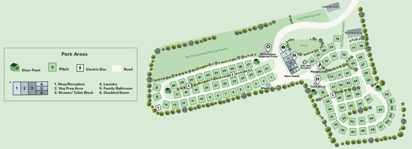 Fully serviced touring pitches with free WiFi, accessible modern facilities and an onsite shop!
