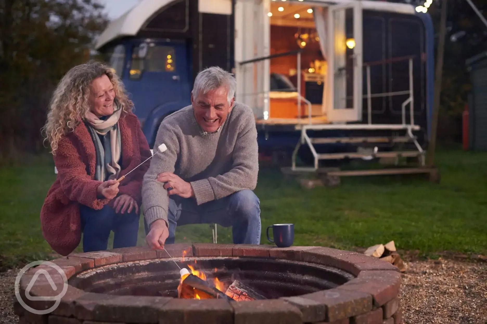 Luxurious glamping horse lorries with private facilities, decking areas and fire pits