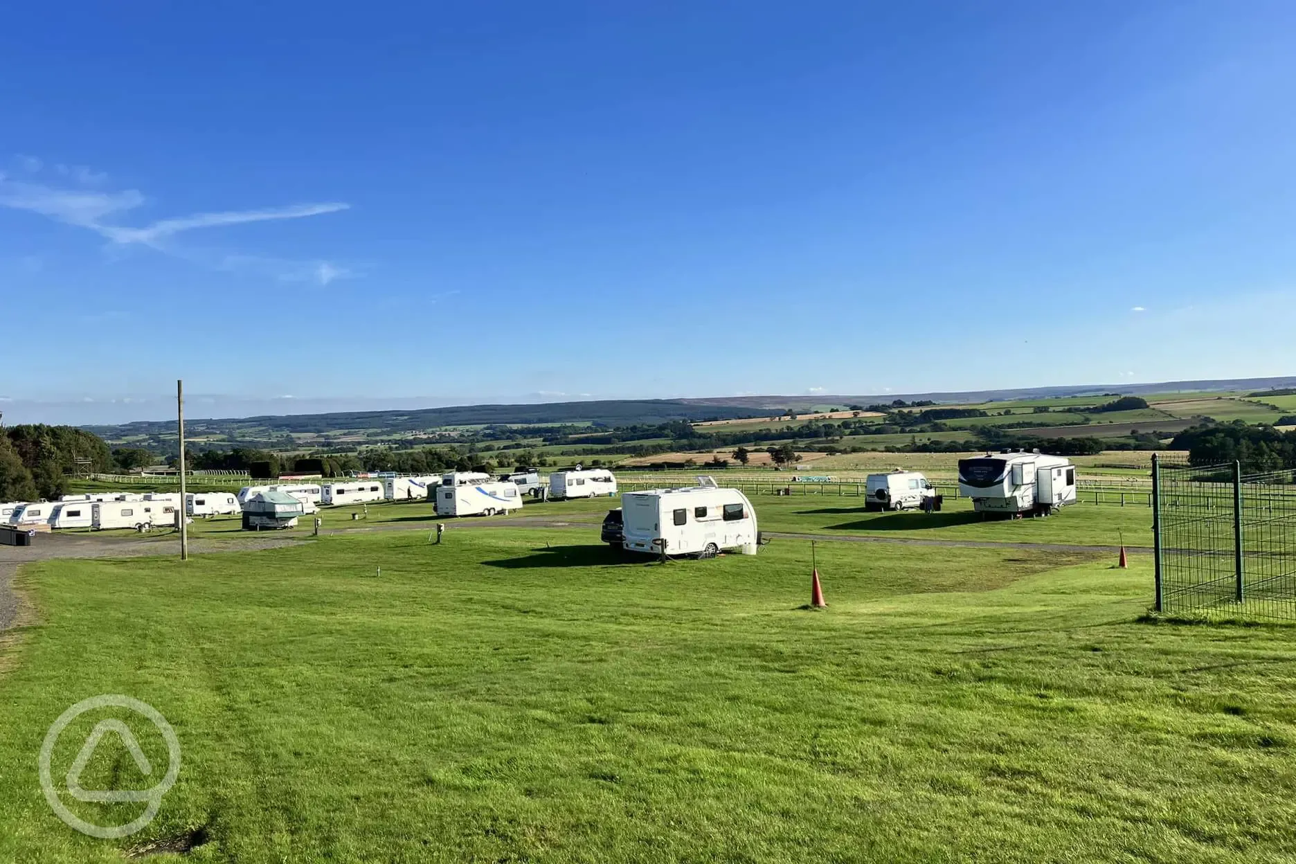 Grass pitches, with optional electric (where available) to suit tents, caravans and motorhomes.
