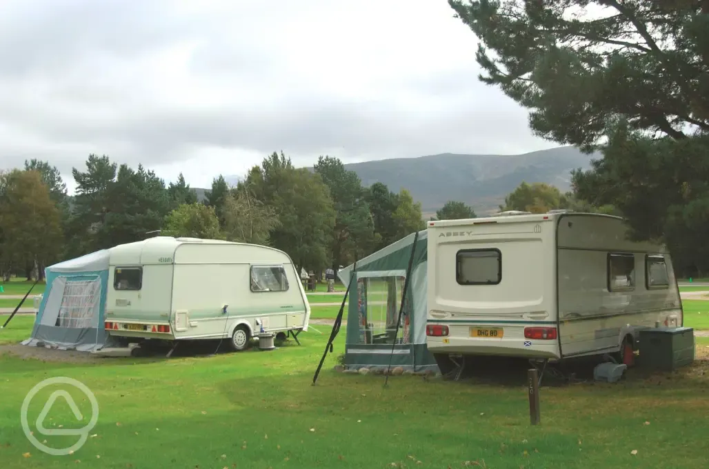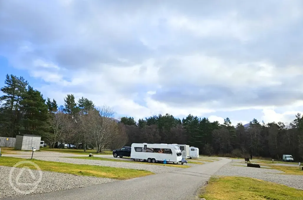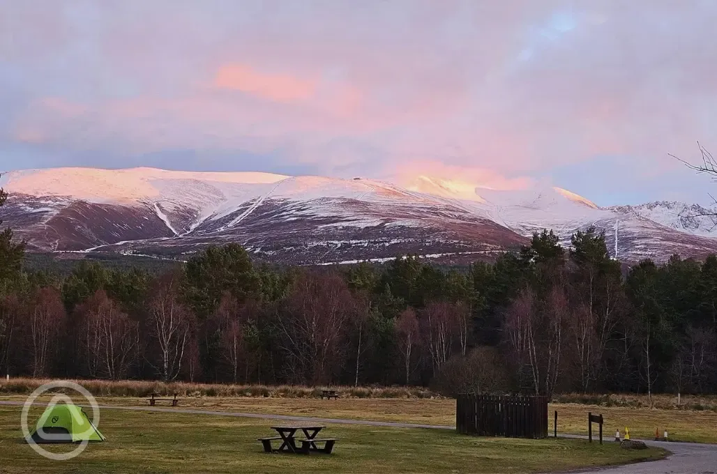 Set within the Cairngorms National Park, this hidden gem offers a peaceful escape in the Scottish Highlands, with breathtaking views right from your pitch. Explore the nearby walking and cycling trails, including the Old Logging Way and An Lochan Uaine, both five minutes from the site. Beach lovers can relax on the sandy shores of Loch Morlich or enjoy paddleboarding and kayaking, just a short five minute walk away. There are 206 pitches, including non electric and electric grass pitches, as well as optional electric hardstanding suitable for tents, caravans, and motorhomes. The electric hook ups are 16 amp. Seasonal pitches are also available. Please note that the electric grass pitches for tents are set on sand. At 300 metres above sea level, this spot is a great destination for skiers. Ski schools and Cairngorm Mountain can be reached within a ten minute drive, offering easy access to some of the top ski runs. Do note that part of the campsite closes during winter, so availability may be limited. This is a haven for outdoor and nature lovers. Look out for deer, otters, and even golden eagles! The nearby Rothiemurchus Estate is just a ten minute drive away, home to a historic 13th-century island castle and scenic walks. Dogs are welcome to join your Highland adventure. Campfires are strictly prohibited due to the surrounding woodland. A gas BBQ is allowed, just make sure it's raised off the ground.