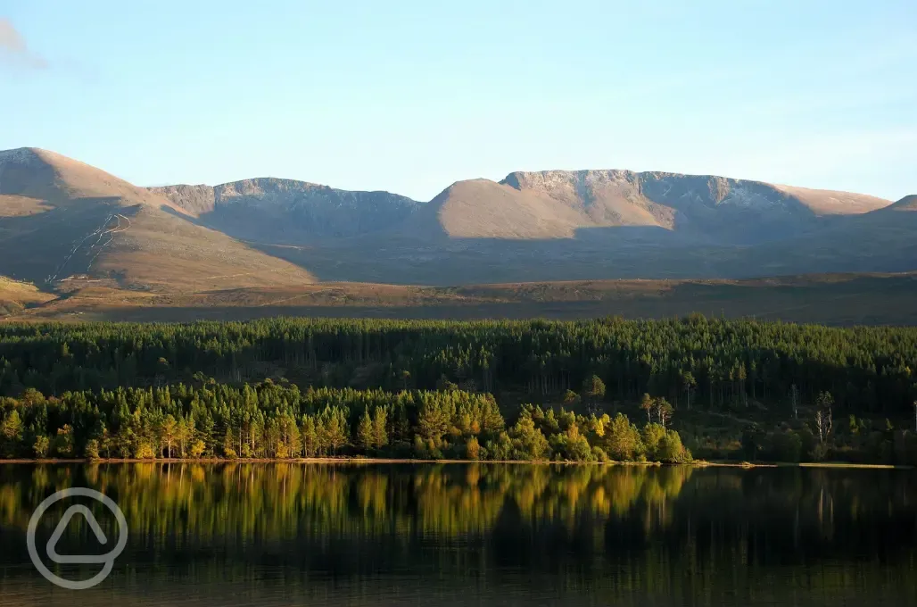 Overlooking mountain landscapes, with seasonal food trucks, and direct access to Loch Morlich