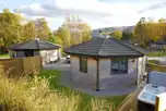 Octagonal, woodland cabins with a double bed and a small sofa bed in the lounge. Bedding and towels are provided for the double bed only. Includes log burning stove, fully equipped kitchen and electric hot tub. Pets welcome. Ensuite shower and loo.