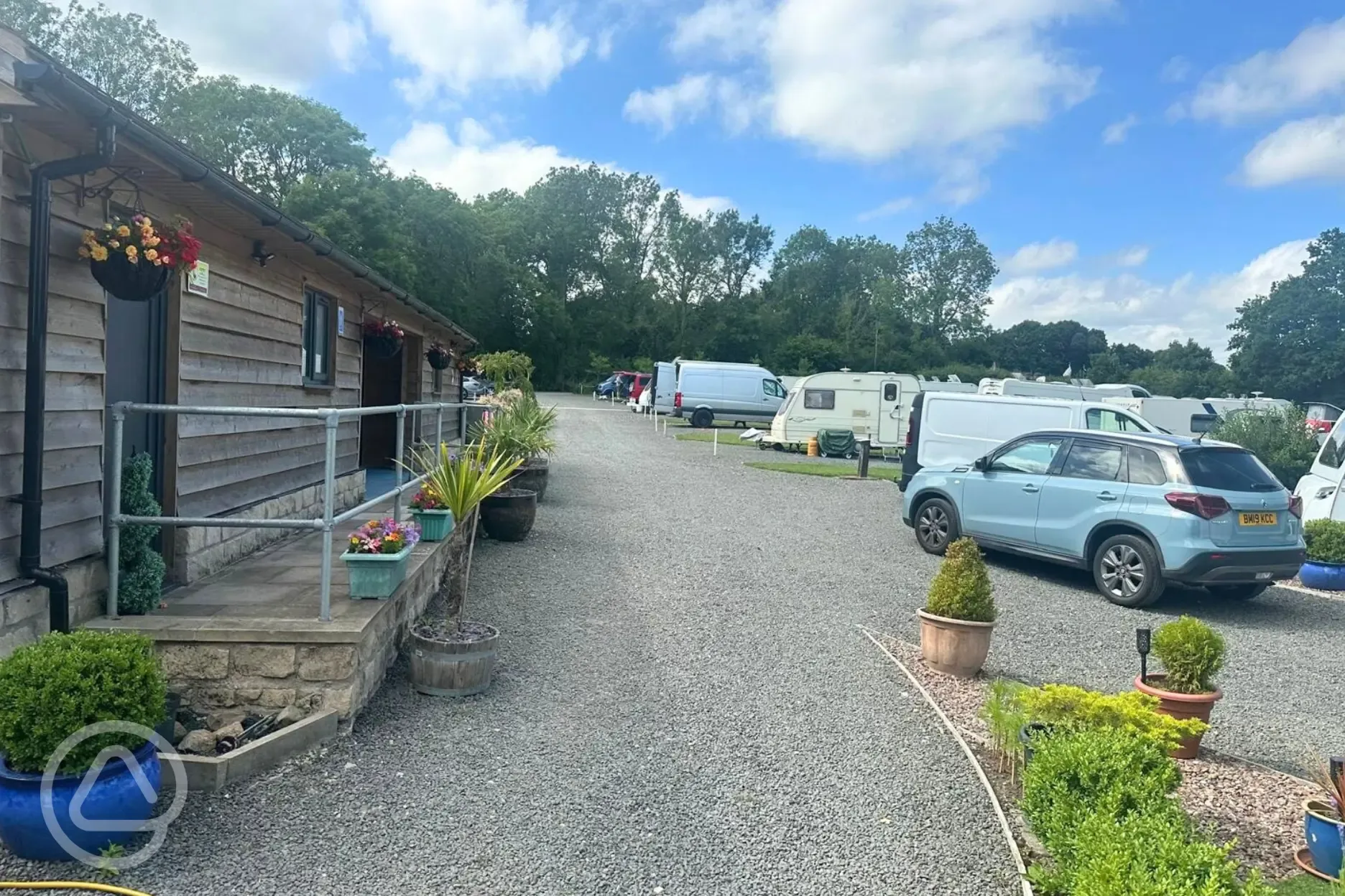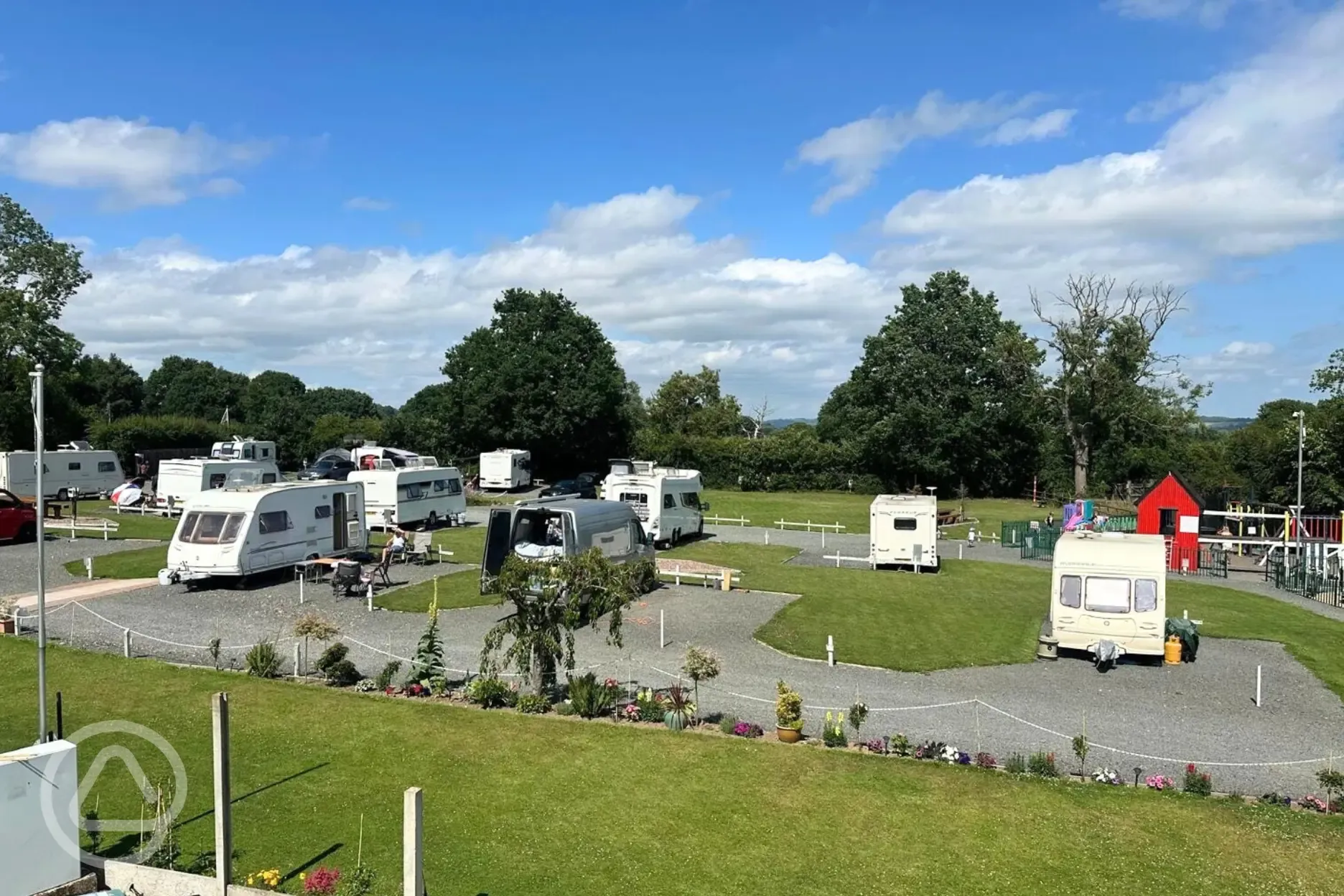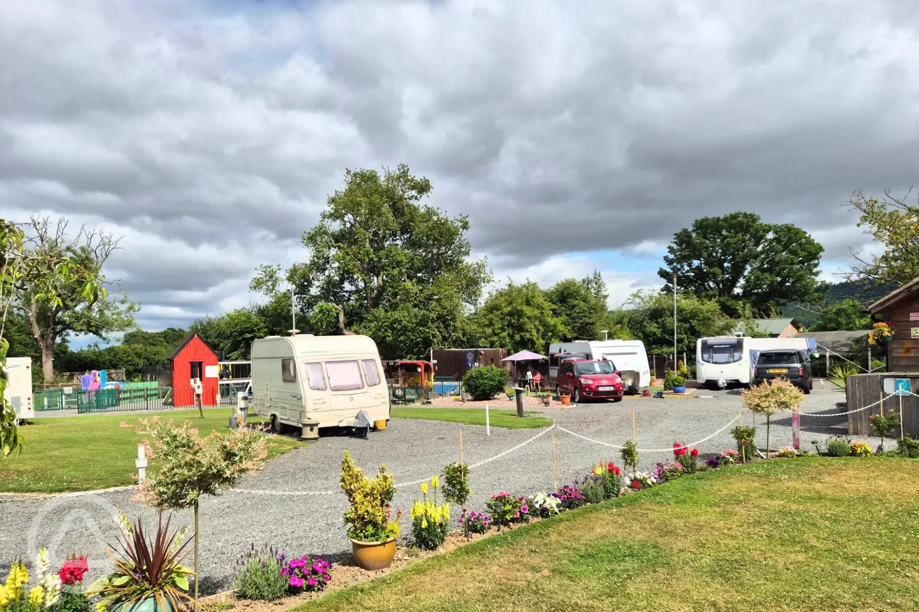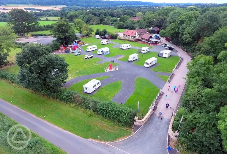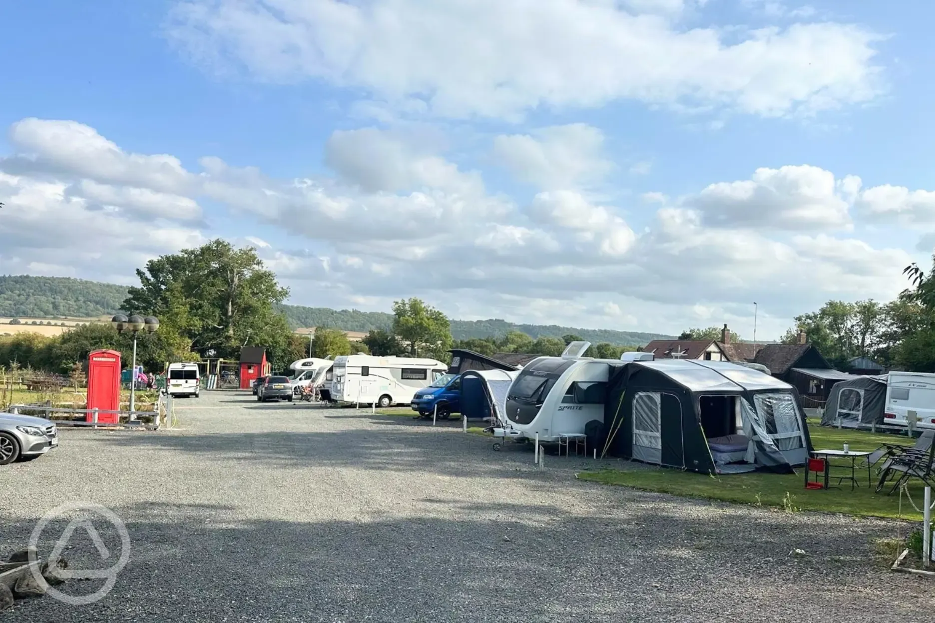 Optional electric hardstanding pitches with countryside views overlooking Wenlock Edge