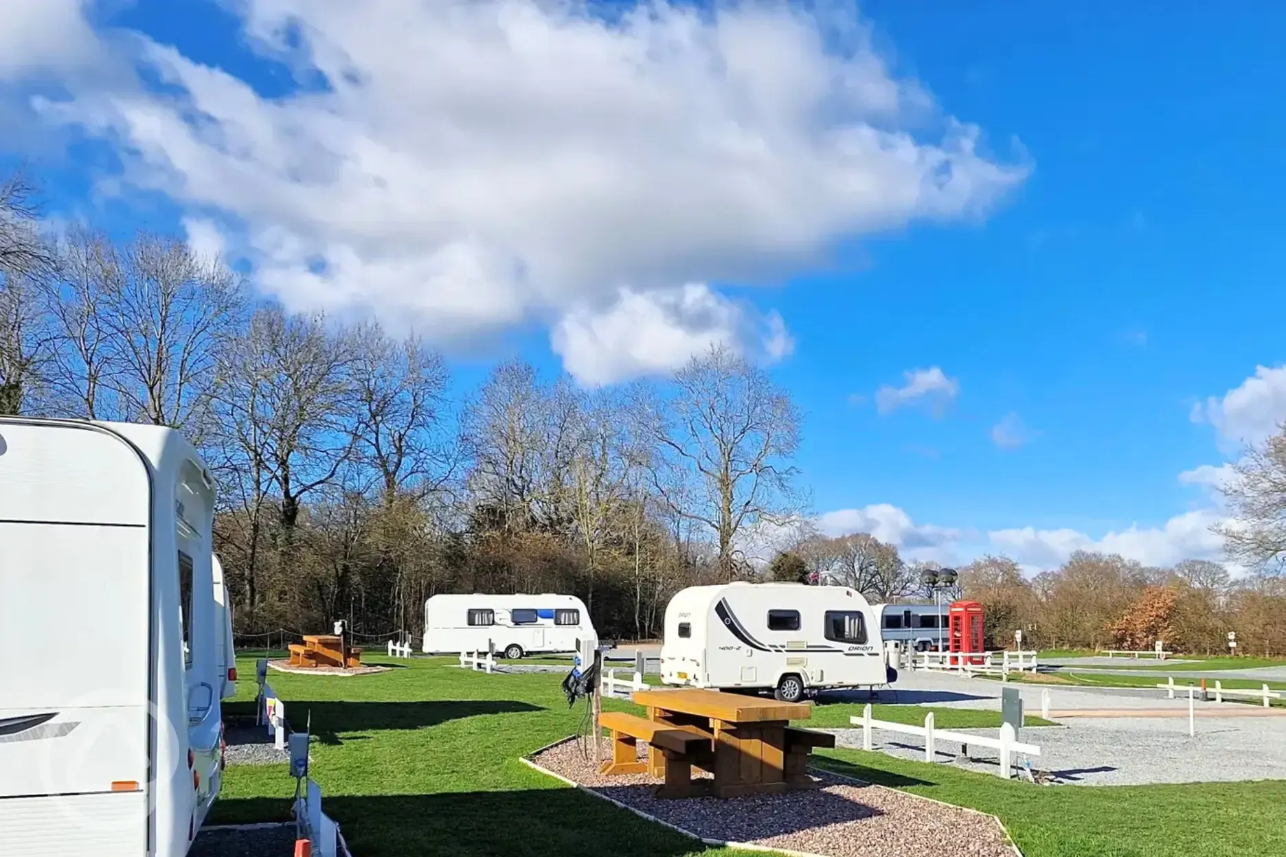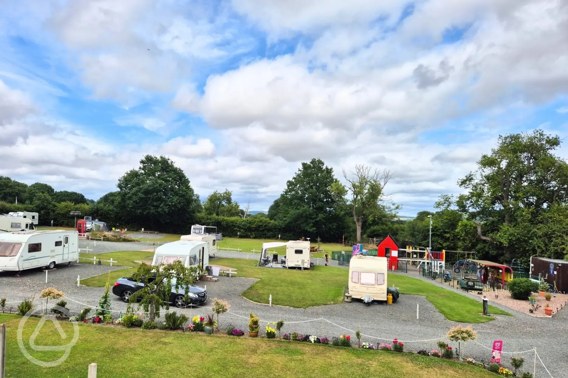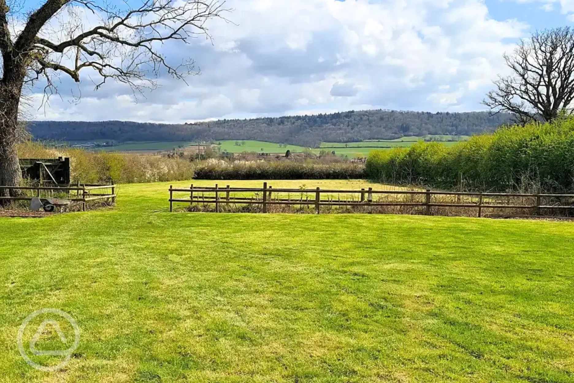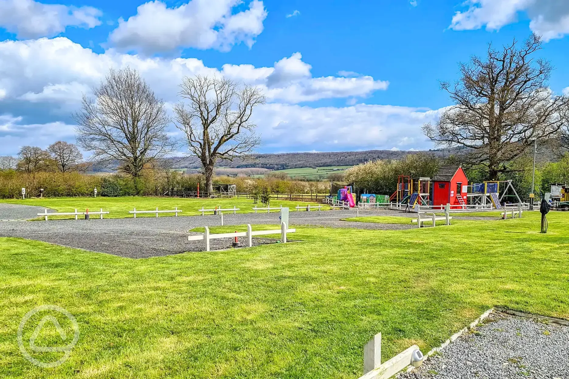 Optional electric hardstanding pitches with countryside views overlooking Wenlock Edge