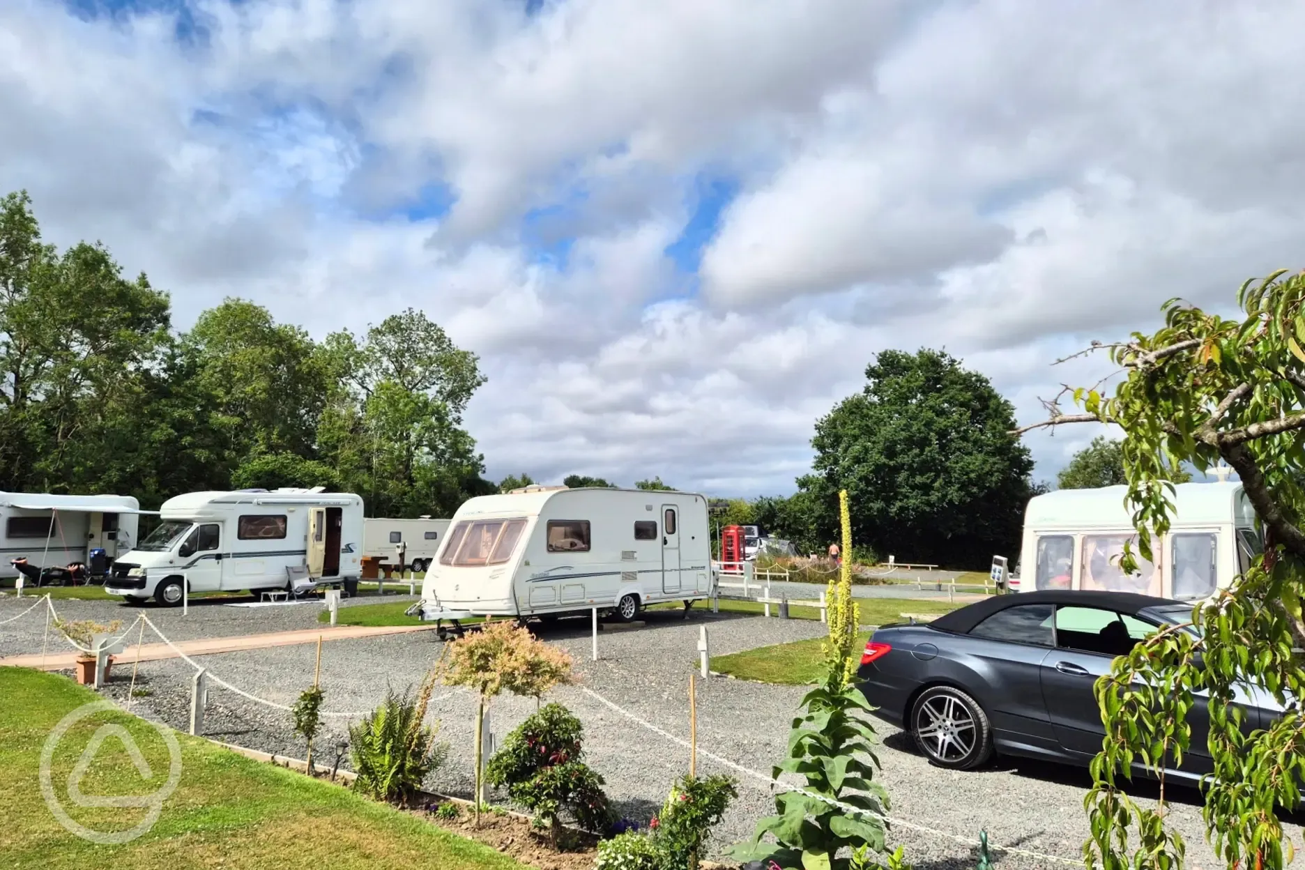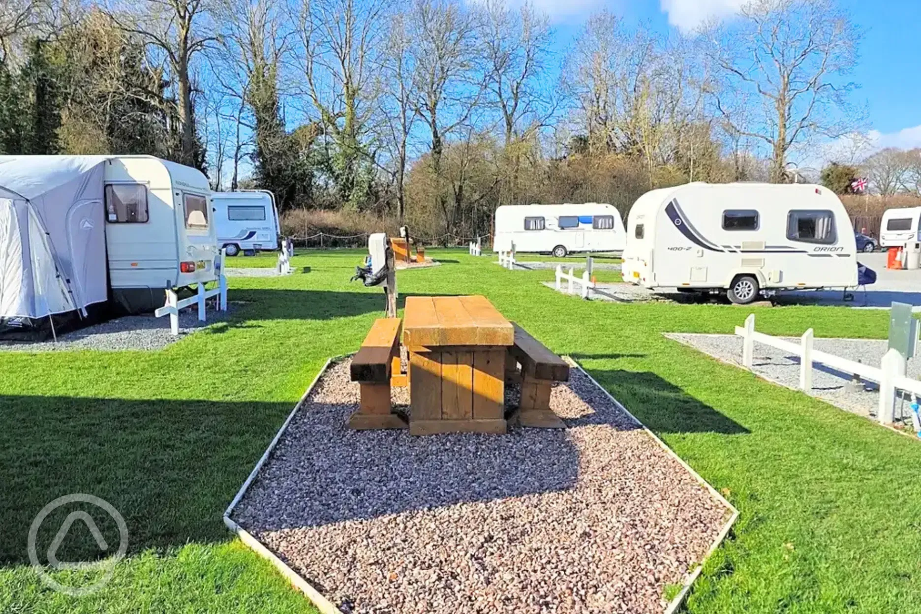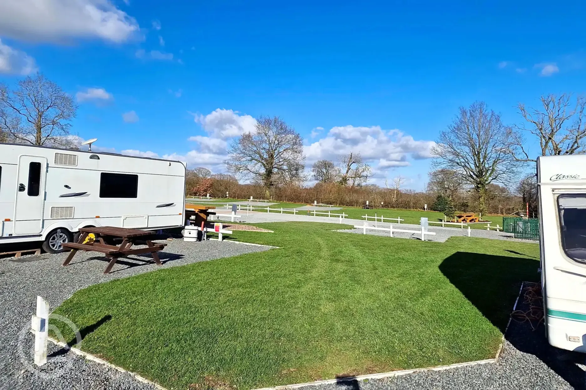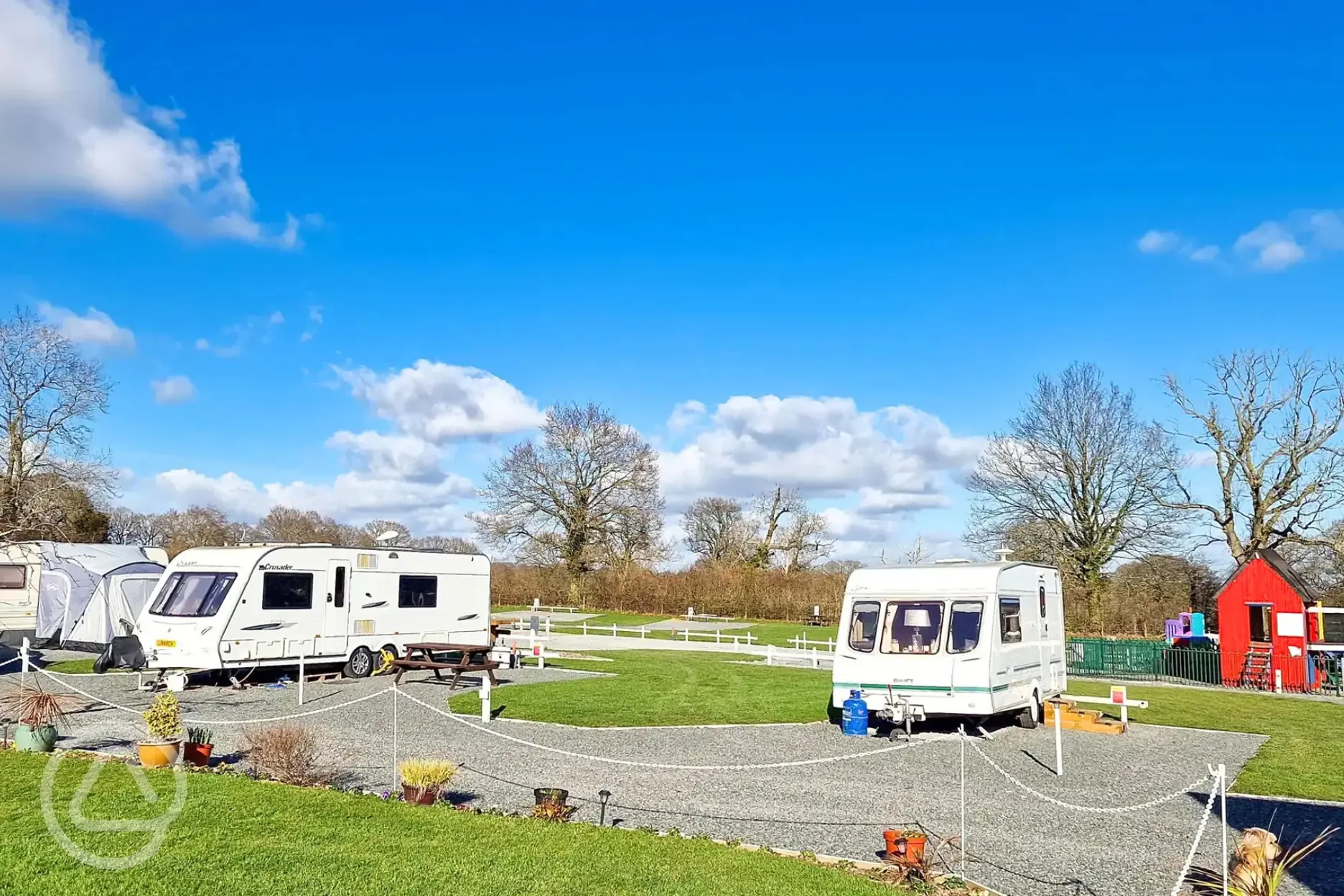 Optional electric hardstanding pitches with countryside views overlooking Wenlock Edge