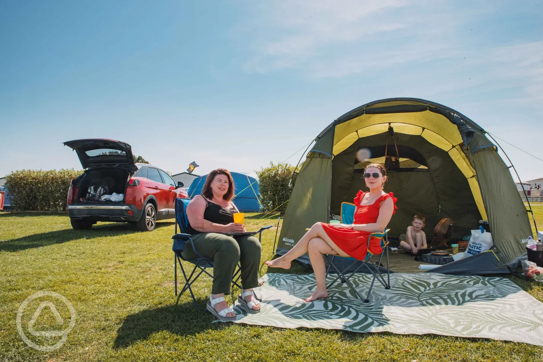 Grass pitches without electric situated in the yellow field. This is the largest field and is closest to the leisure park and fishing lake. Suitable for tents and tourers.