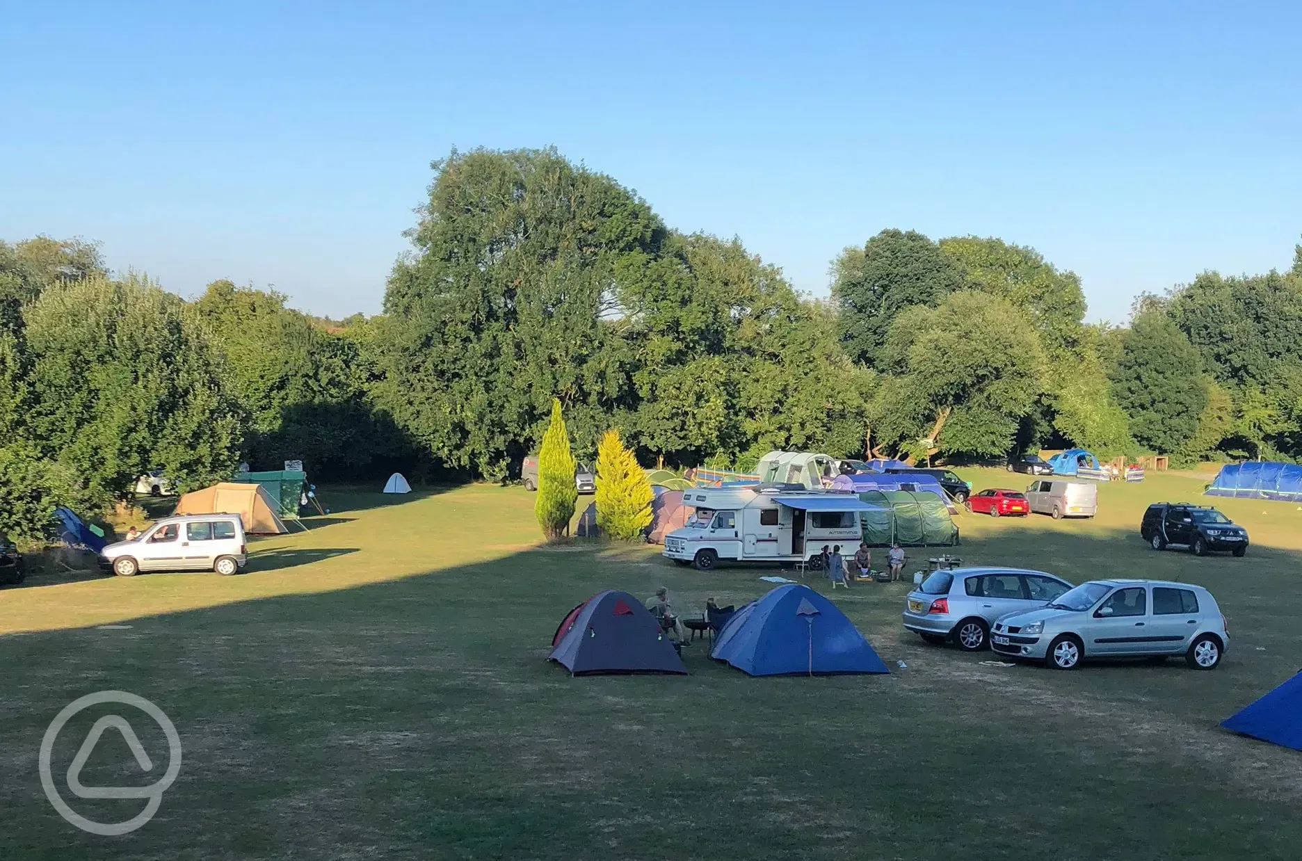 The park is family run and well established, ideal for walkers and hikers in the national park and anyone looking for an outdoorsy break with family. It sits along the northern edge of the central section of the Downs - great for accessing the South Downs Way. Within the main field you'll find a good number of electric hardstandings for tourers, plus roughly double the number of tent pitches on grass. For those in search of the very best view across the Downs, there are electric terrace pitches on grass. The main field also has luxurious glamping tents for those wanting a ready to go stay in a comfortable bed. With five acres of space, the Paddocks Field is a hit with family, school and educational and corporate groups. It has a large fire pit for evening gatherings available and an attractive pond. This part of the site also offers some fully serviced pitches which are perfect for touring all year round and offer water, electric and drainage. Book a relaxing and glam break in one of the bell tents, which each sleep up to four on comfy beds. Inside these are kitted out with electric and are light and airy. They include all the essentials for fixing a meal, a kettle and supplies for hot drinks, plus a fire pit outside perfect for stargazing. Pets welcome.