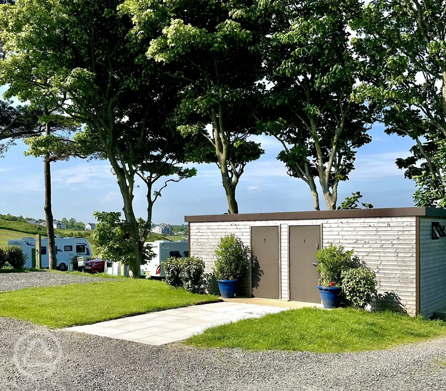 Grass pitches suitable for caravans or motorhomes and including 16-Amp electric hook-up and fresh mains water.