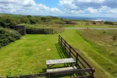Relax at this coastal, members only site and enjoy sea view pitches, direct access to the Wales Coast Path, and local sandy beaches that are within a ten minute drive. Sandersfoot and Tenby are within a 30 minute drive, too! Onsite, you will have access to a handy farm shop, a playground, and a dog exercise area. Choose from non electric meadow pitches, enclosed non electric meadow pitches, or enclosed electric meadow pitches for campers and tourers. Each pitch has its own compost toilet. There are two enclosed 10m x 10m hardstanding pitches with a 16 amp electric hook up and water hook up for roof and trailer tents, campervans, and motorhomes. Tourers will also have access to six enclosed electric hardstandings with a water hook up, private showers, compost toilets, and washing up areas. There is also a cooking shelter, picnic table, and fire pit. Please note that two allow caravans, the other four do not. Glampers can opt for cosy furnished bell tents that feature a double bed, a day bed, a camp bed, and a compost shower, or there are five ensuite geodomes that sleep can sleep up to five with a double bed, two single beds, an optional camp bed, a sofa (bedding and linen are provided, though towels aren't), and a cooking shelter. Both have access to heating, electricity, a kitchenette, and outdoor seating. This site is for The Greener Camping Club members only. At least one member of the booking party has to be a member Up to four dogs are welcome here! Campfires and BBQs are permitted. Guests can purchase kindling, firelighters, and logs from the shop onsite.