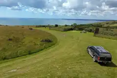 Gated hardstanding 10m x 10m pitches with 16 amp electric hook up, water hook up, and chemical disposal point for roof and trailer tents, campervans, and motorhomes. Shared facilities nearby.