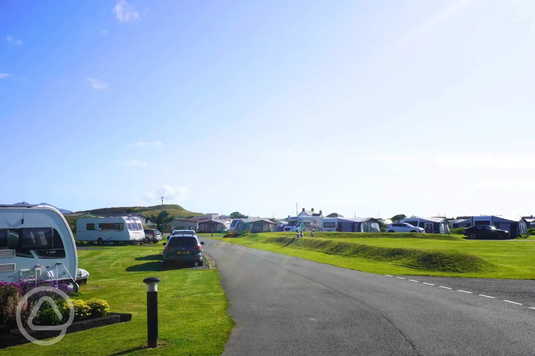 Electric hardstanding pitches suitable for caravans, motorhomes, and small campervans.