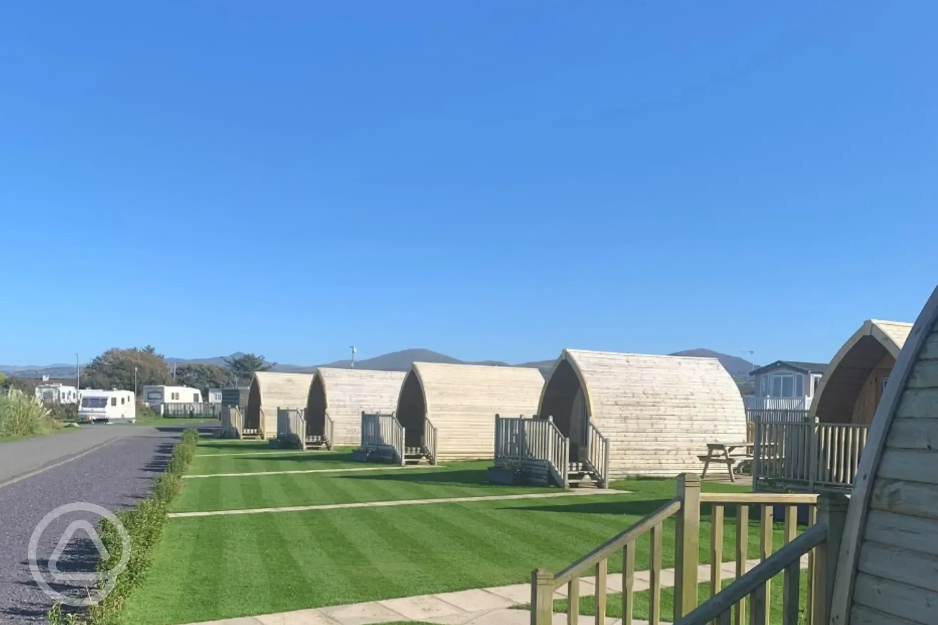 This park is an ideal base for families looking for an exciting coastal break, with the Blue Flag Dinas Dinlle Beach just a five minute walk away. If you're after something more adventurous, Snowdonia National Park (Eryri) is only 20 minutes by car, offering scenic walks, waterfalls, and the incredible Yr Wyddfa summit. Onsite, you'll find 88 hardstanding pitches with electric hook up for caravans, motorhomes, and small campervans, along with 61 fully serviced hardstanding pitches that include electric, water, and grey waste access, also suitable for caravans, motorhomes, and small campervans. If you prefer a little extra comfort, choose from the cosy camping pods. Sleeping four, each pod includes a double bed, two single mattresses, heating, an electric socket, and a mirror. You'll just need to bring your usual camping essentials, such as bedding, pillows, and cooking equipment. Outside, there's a decked area with a picnic table, perfect for relaxing. During your stay, enjoy a range of onsite amenities including an outdoor heated swimming pool, games room, playground, bar, and more. Caernarfon is also just a 15 minute drive away, home to a selection of great attractions and eateries. Up to two dogs are welcome to join you on your stay. Please ensure dogs are kept on their leads. The site allows BBQs. Sorry, open fires are prohibited here.