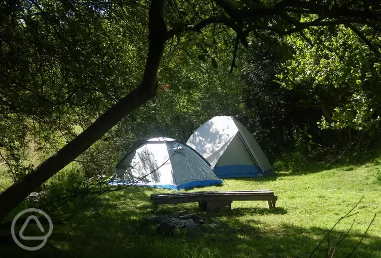 The Gorfanc Hideaway is a peaceful and eco-friendly wild camping site in the beautiful hills of Mid-Wales, within easy reach of the borders and the coast. It's very much a back-to-basics site, where dark skies are full of stars and camp fires are almost compulsory. Pitches are a short walk from your car and you'll need to be happy with basic but adequate and clean facilities. It's ideal for families who want to be in the real outdoors, couples wanting seclusion, and anyone looking for the opportunity for solitude. The site accommodates just six pitches on a wild camping basis - and it's rare that all are occupied. Choose to be sheltered by the stream, open to the wider views, remote and secluded, or closer to the parking and facilities. Most of the pitches are out of sight of each other and you'll have a short walk from your vehicle to your pitch. Some pitches have room for more than one small or medium tent, or one large tent, while others are only big enough for one small 1 or 2 person tent. Because of the lie of the land, very large tents cannot be accommodated, so do check.
