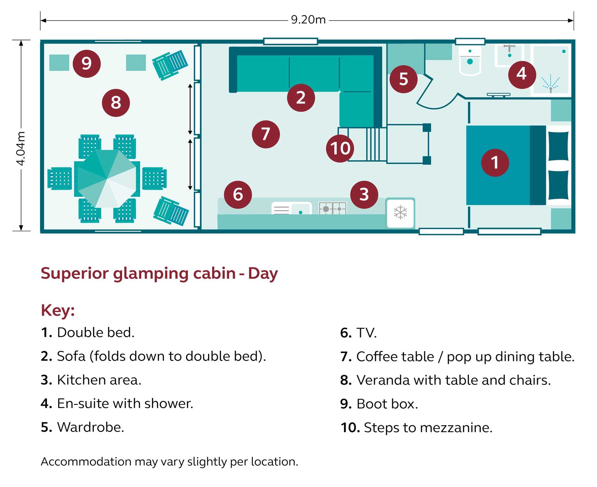 Range of ensuite glamping pods, cabins and safari tents with kitchens, WiFi, TVs and more!
