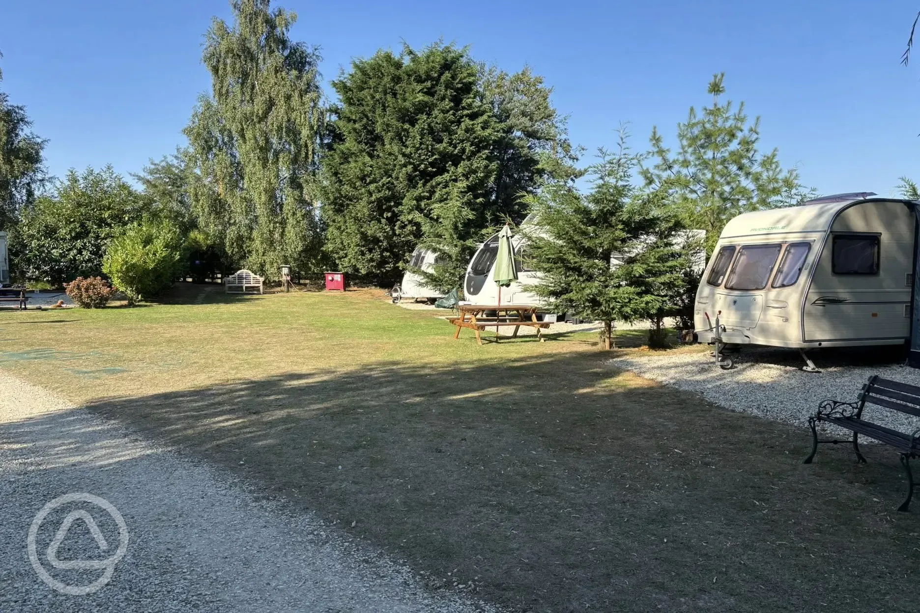 Gravel pitches with 16 amp electric suitable for motorhomes and caravans.