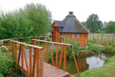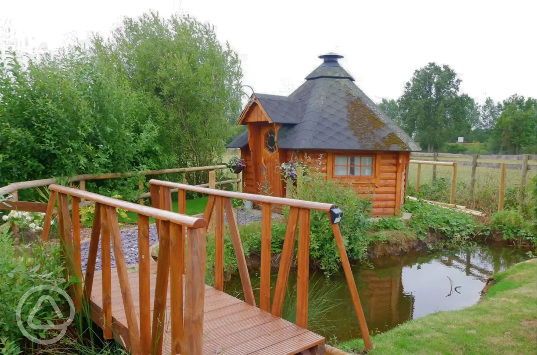 Please be aware of the open waters adjacent to the site, particularly with children who cannot swim - (Large pond by the house, small moat around the wooden hut ).