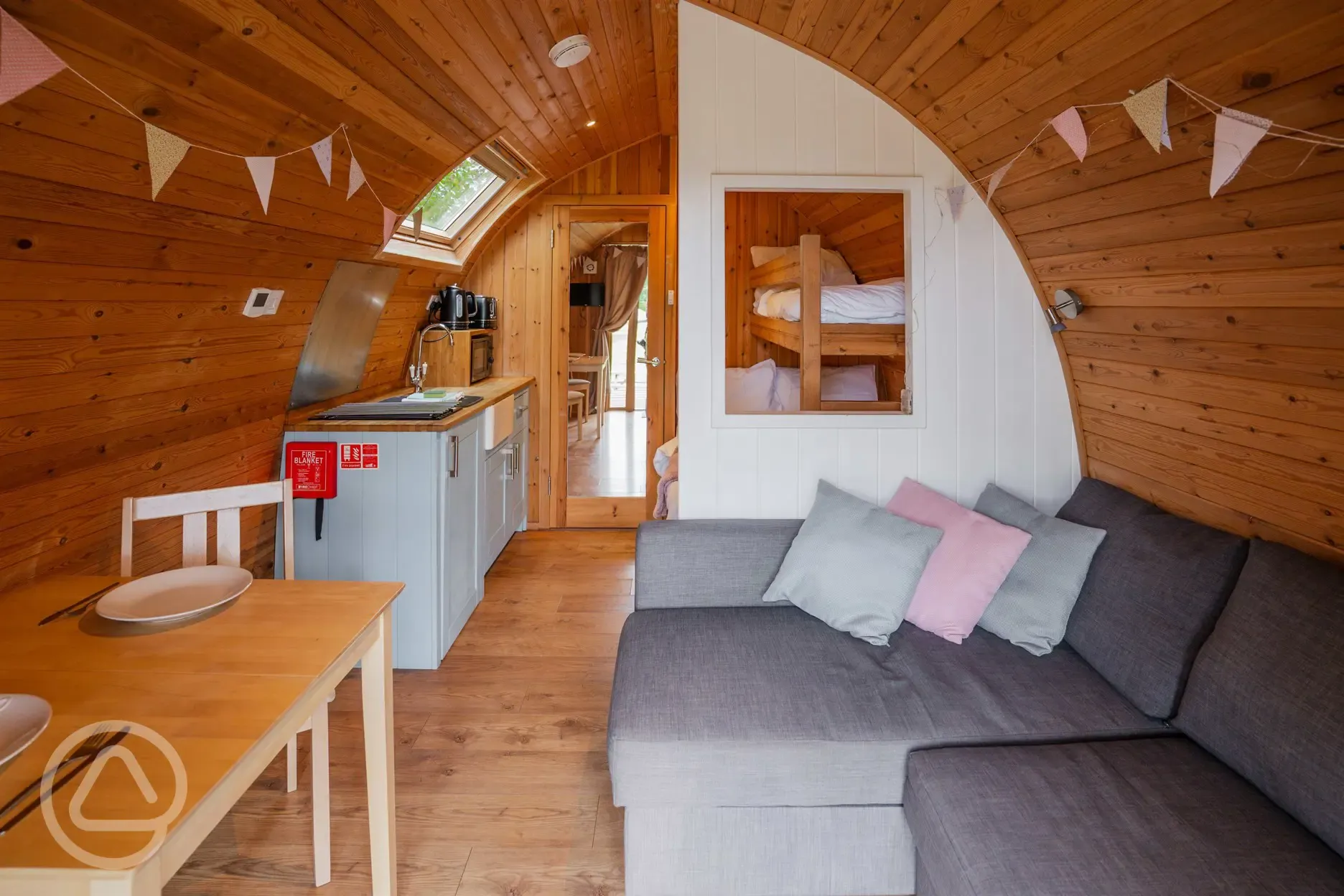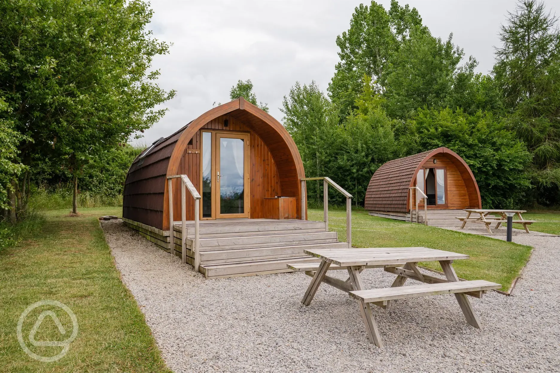 Spacious touring pitches and cosy ensuite glamping pods with plenty of room for kids to play