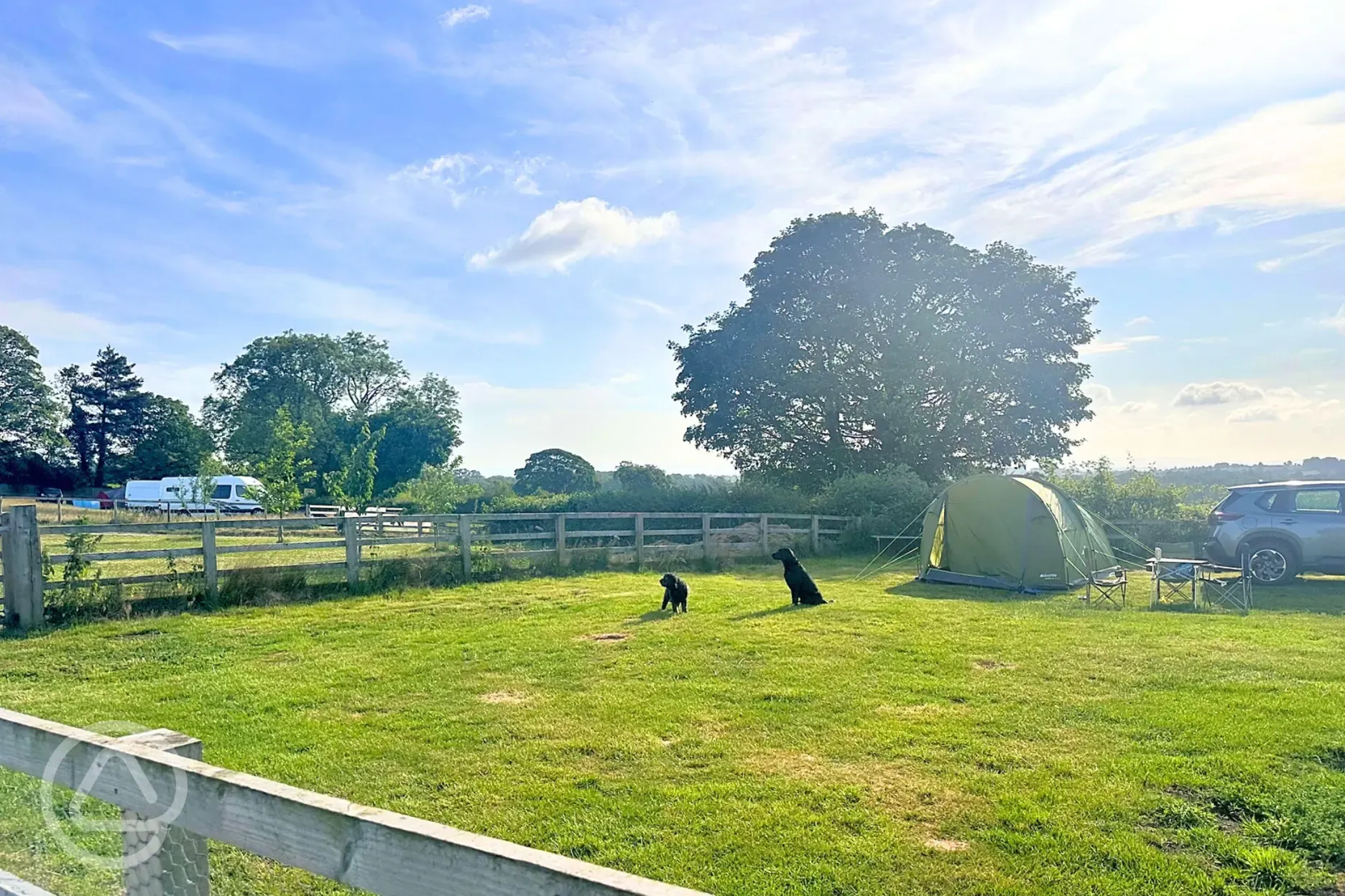Grass enclosed pitch with a water hook up designed for guests bringing a dog. Suitable for tents, roof and trailer tents, campervans, caravans and motorhomes. No electric.