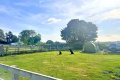 The site offers a peaceful base for exploring, set on the edge of the Yorkshire Dales, just ten mintues from Ripon and 30 minutes to Harrogate. The campsite enjoys views of rolling fields, with the charming village of Kirkby Malzeard a five minute walk away, where there's a pub, a shop and a butchers. The site offers 40 non electric grass pitches which are unmarked, so simply choose the spot that takes your fancy. These pitches allow tents, trailer tents, campervans, caravans and motorhomes. There are also nine electric grass pitches, each offering a 9 amp hook up. For guests visiting with four-legged friends, the campsite has a special fenced non electric pitch. This private, enclosed space has its own water tap and is ideal for dogs who like a bit more room to roam safely. It allows tents, campervans, motorhomes and caravans. There is also a unique range of glamping on offer. These include a snug camping pod, a tiny house cabin, an ensuite horsebox and even a converted double-decker bus with its own facilities. Hungry campers can head to The Wok Inn, the friendly onsite café. It serves hot and cold meals, sweet treats and tasty breakfasts. Opening times vary throughout the week, and during busy seasons, there's always someone around to help with snacks, coffee and cakes. A small shop at reception stocks handy essentials too. Dogs are also welcome to join you for your stay, with up to three permitted per pitch. Please just ensure they are kept on the lead when onsite, unless you have booked the enclosed pitch. The site even has paddocks available for those wanting to bring their horse along. In the evening, you can cook up a BBQ or toast marshmallows over the fire pit, just please ensure these are raised from the ground. Mobile wood-fired hot tubs and fire pits can also be hired when onsite, delivered by a tractor to your pitch!