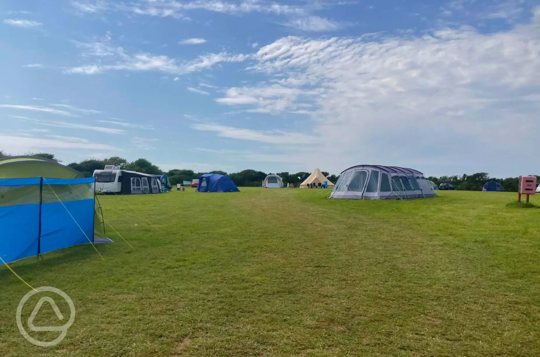 Peaceful site in four acres of meadows with spacious grass pitches. Close to beaches, five minutes to Redruth.