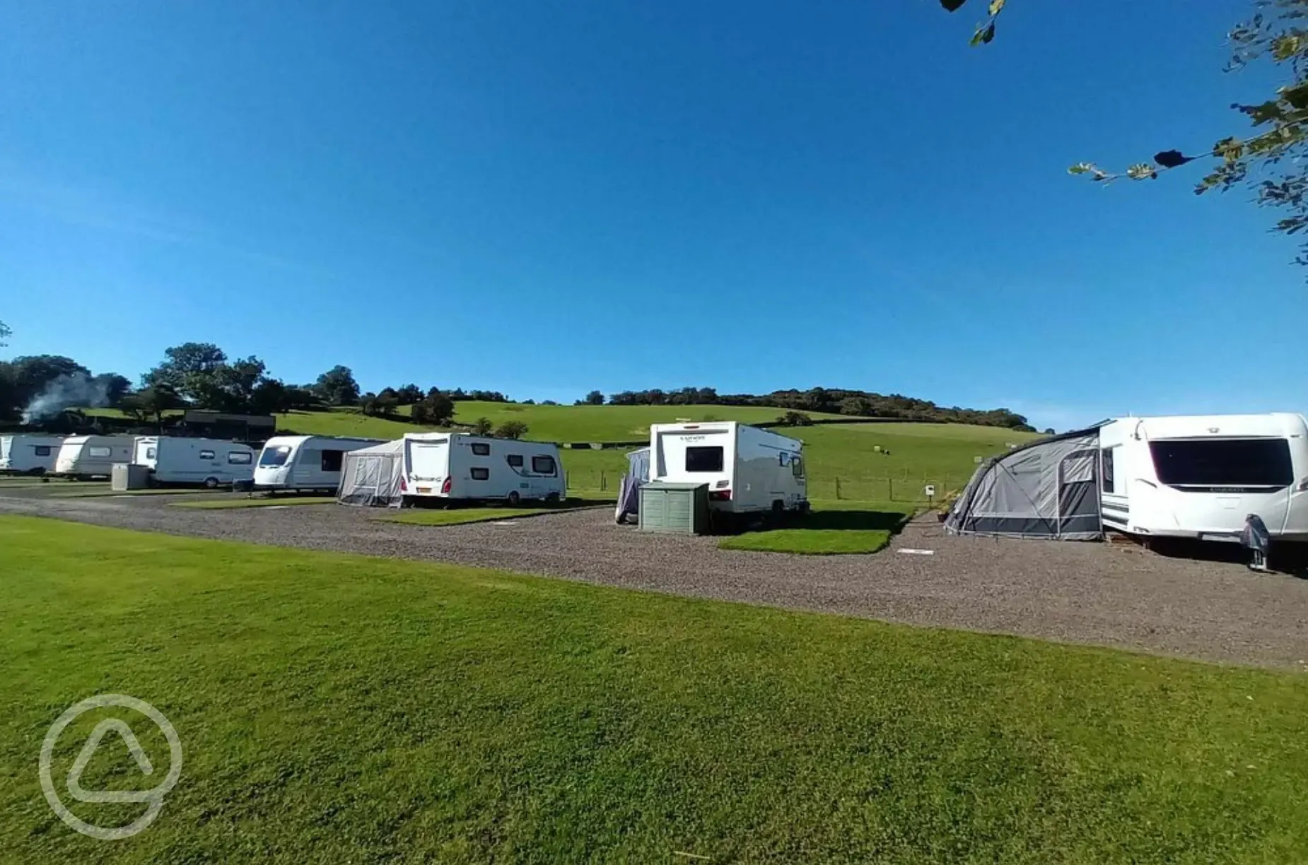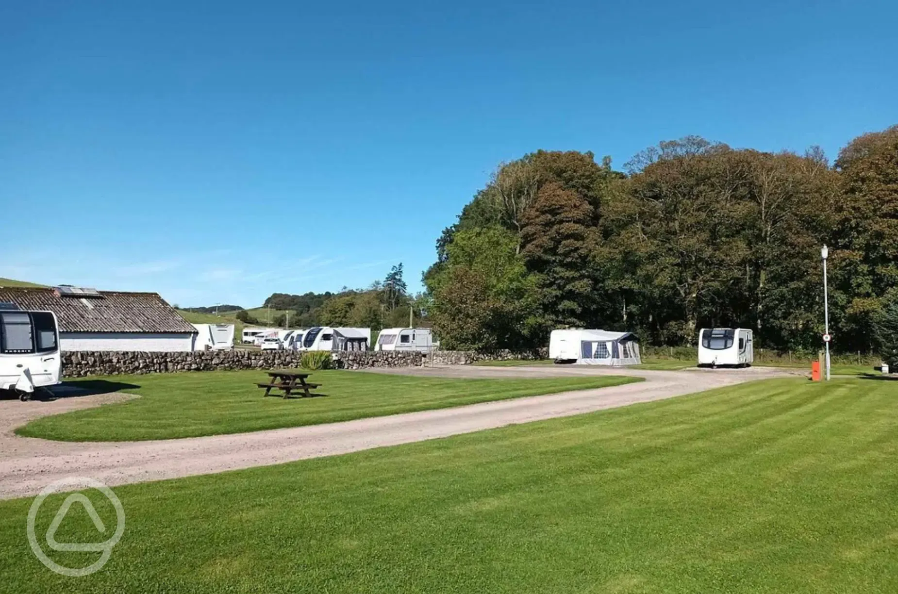 The park is located within an easy 15 minute stroll along a pavement all the way to Dalbeattie, where you can find everything you might need. There's a choice of various places to eat and drink for breakfast, lunch and dinner and a generous play park with tennis courts and a football pitch. You'll find spacious, level and well-drained hardstanding and grass pitches. These all allow easy access and provide 16 amp electric and TV hook-ups. There are two lovely holiday homes available to hire and offer plenty of comfort with decking that overlooks the beautifully kept grounds.