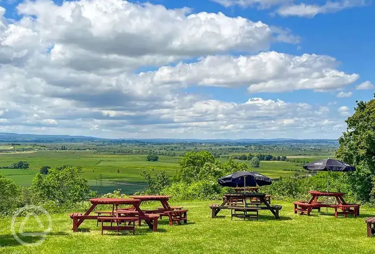 Park with far-reaching views of the Somerset Levels, ten minutes from Wookey Hole. Onsite bar and swimming pool!