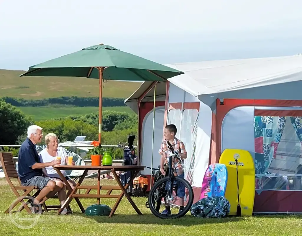 Grass pitches with 16-Amp electric, for tents and tourers.