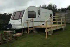 A sited 4-berth touring caravan for hire, with deck and countryside views.