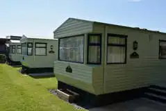 Four berth caravans with furnished interiors, ideal for families. These include a lounge with a TV, seating and a dining area.