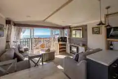 Cabins with sea views, mezzanine bedroom, L-shaped sofa bed and a dining table that converts into a double. Open plan living/dining area with a TV, kitchen and heating. Ensuite with a loo, shower and hand basin. Bed linen not included.