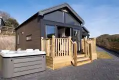Cabins with sea views, mezzanine bedroom, L-shaped sofa bed and a dining table that converts into a double. Open plan living/dining area with a TV, kitchen and heating. Ensuite with a loo, shower and hand basin. Bed linen not included. Optional hot tub.