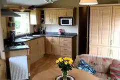 This modern static caravan has one double bedroom and two twin bedrooms. It is fully equipped with heating, cooker, microwave, fridge-freezer, utensils and pots/pans, own parking area and decking with garden furniture. Sleeps up to eight people.
