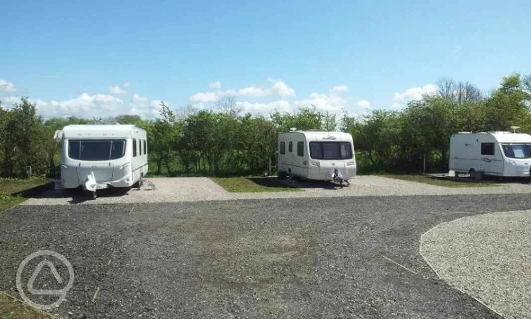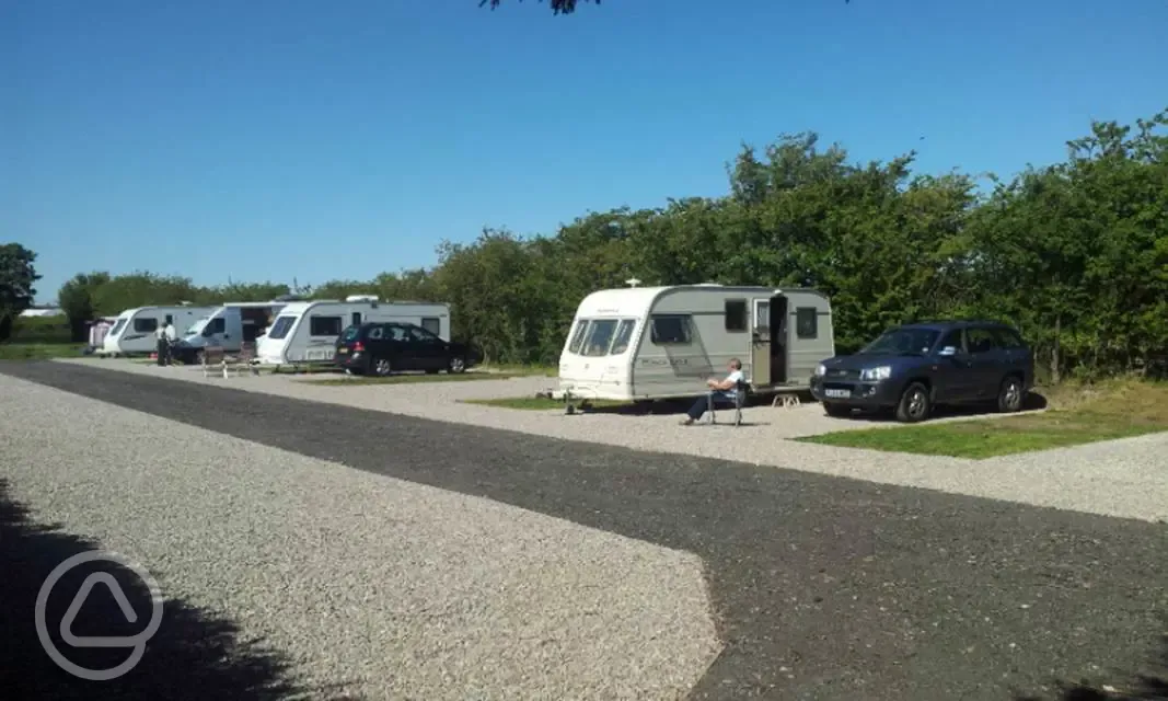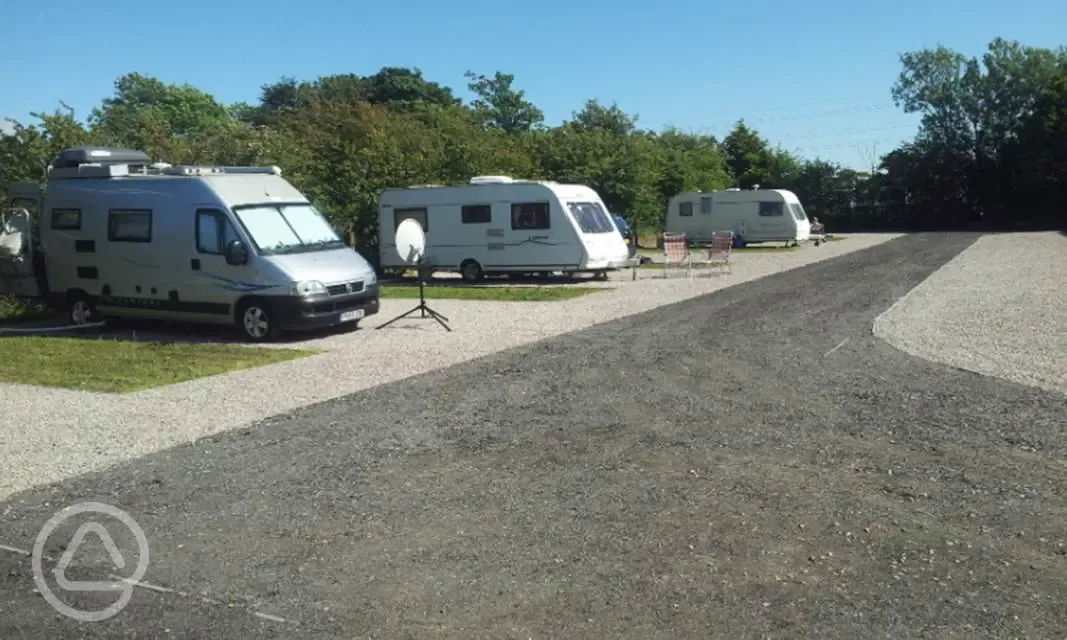 Hardstanding touring pitches are equipped with electric hook up and grey waste water disposal.