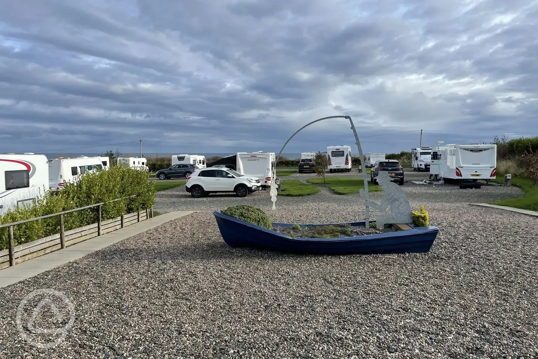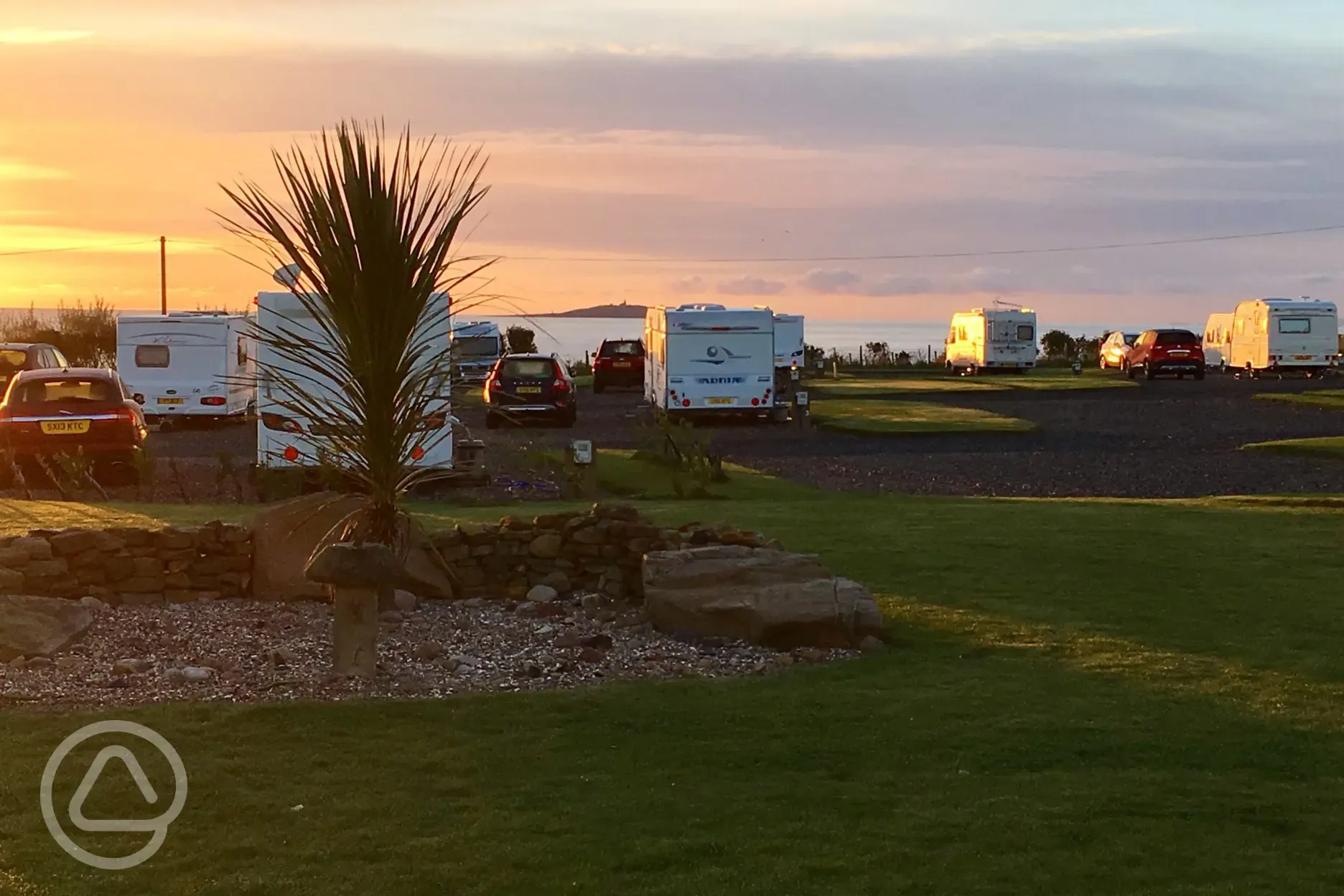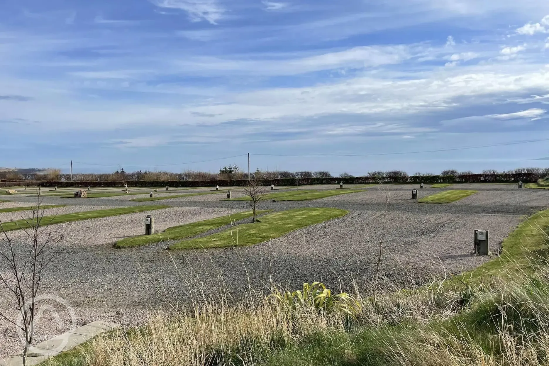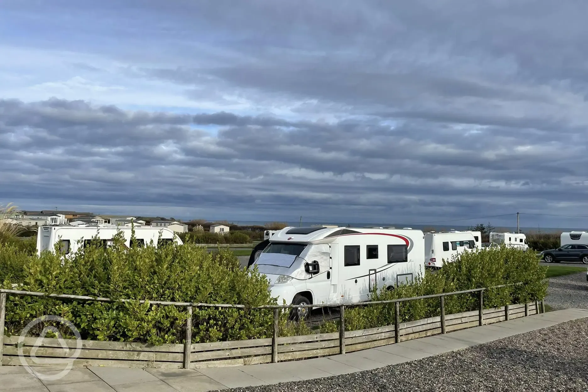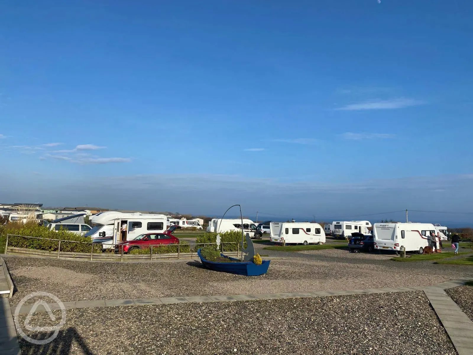 All pitches are hardstanding, extra large and fully serviced with water, waster water and electric hook up.