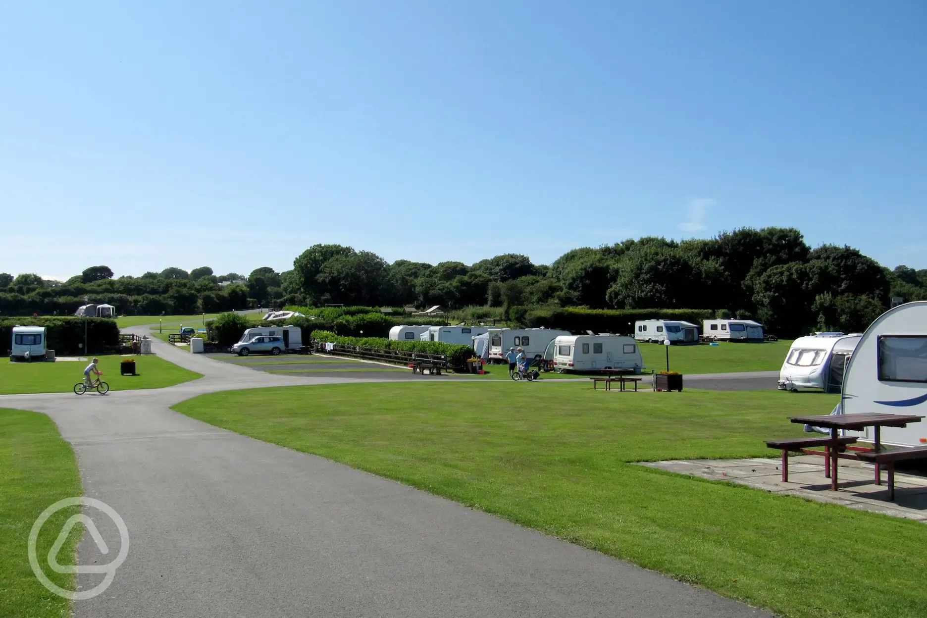 This family friendly site is located on the island of Anglesey and is a great way to spend your holiday. Relax at your pitch, explore the golden sandy beaches and nature walks the island has to offer. Anglesey's Area of Outstanding Natural Beauty is also a short 15 minute drive so is great for hikers and nature lovers. The expansive green spaces on site provide tent and touring grass pitches, touring grass pitches and touring hardstanding pitches, all with electric hookups and each pitch being 6m x 6m in size. There is also a grassed area for awnings. The seaside village of Benllech is just a 15 minute walk away, with the picturesque sandy beach of Traeth Benllech, offering amazing views and walks for your family and four-legged friends. Stroll down the coastal path, have a picnic or spot some wildlife. The mainland is also a 20 minute drive away with many popular attractions on offer. Dogs are more than welcome.