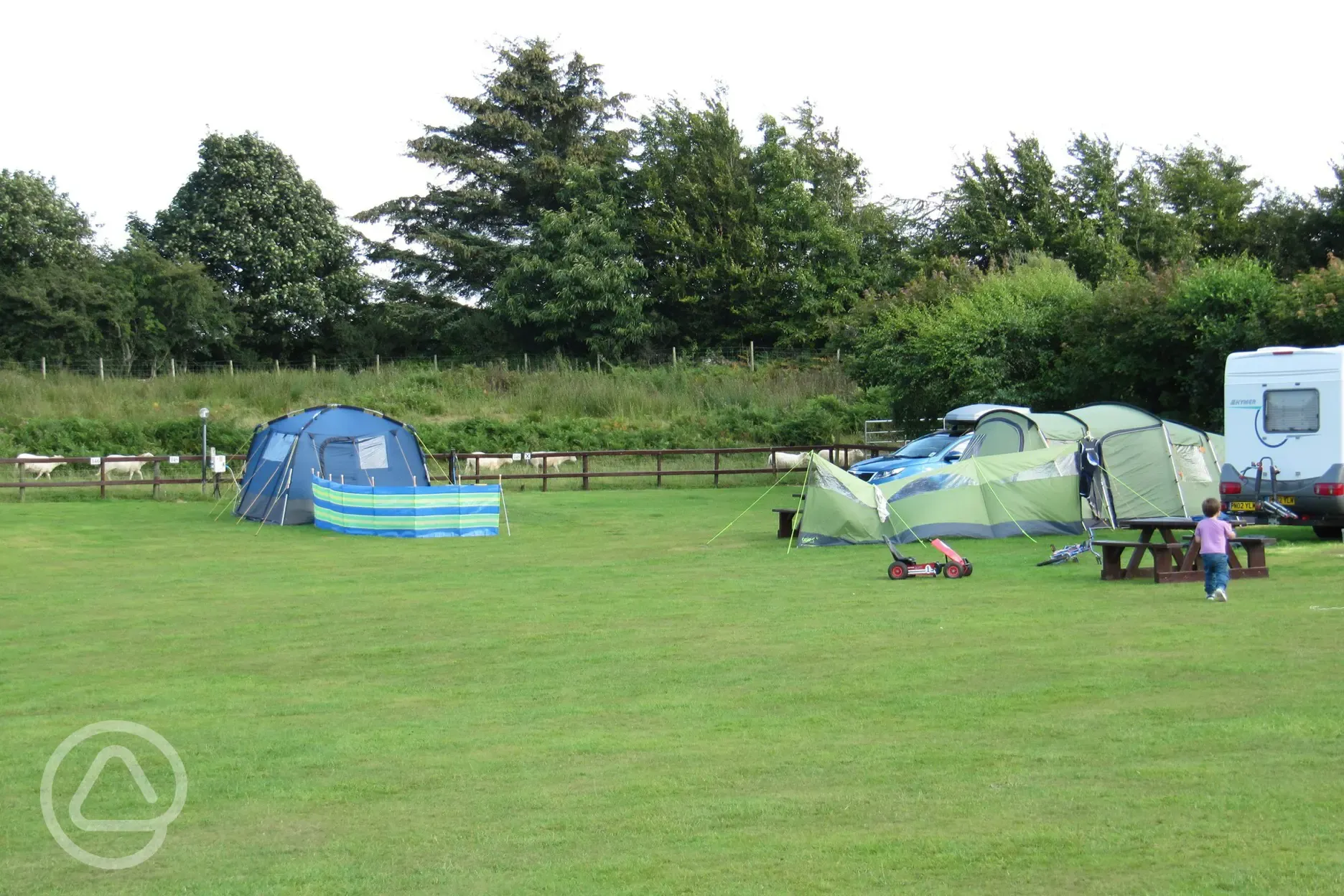 Electric grass pitches suitable for tents, caravans and campervans. Maximum unit size is 6m x 6m