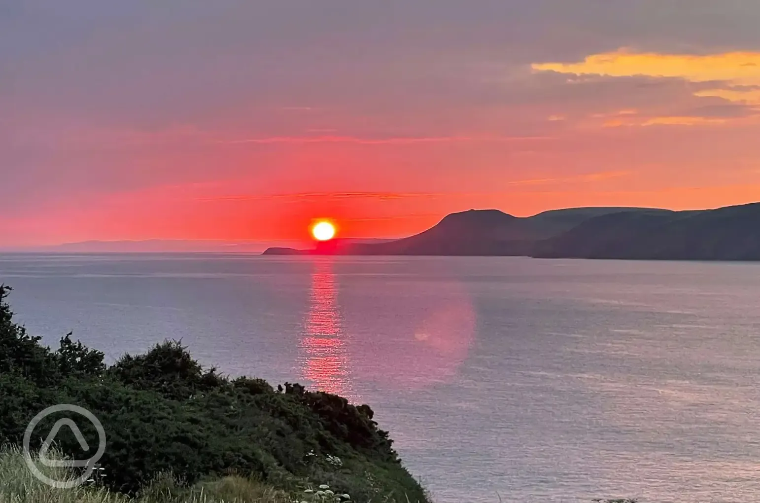 This peaceful off-grid site offers easy access to some of Wales' best beaches, making it an ideal overnight stop for long distance walkers tackling the Ceredigion Coast Path or anyone simply seeking a relaxing coastal getaway. There are 30 non electric grass pitches overlooking Cardigan Bay, suitable for tents, motorhomes and campervans. Please note that twin-axle vehicles and trailer tents are not permitted. Aberporth Beach is a 20 minute walk away, perfect for paddleboarding, kayaking, and classic fish and chips! Further along, Cardigan is a 15 minute drive away, home to Cardigan Castle, shops, and a variety of cafes and eateries. Dogs are welcome. BBQs are allowed as long as they are raised off the ground. Campfires are not permitted.