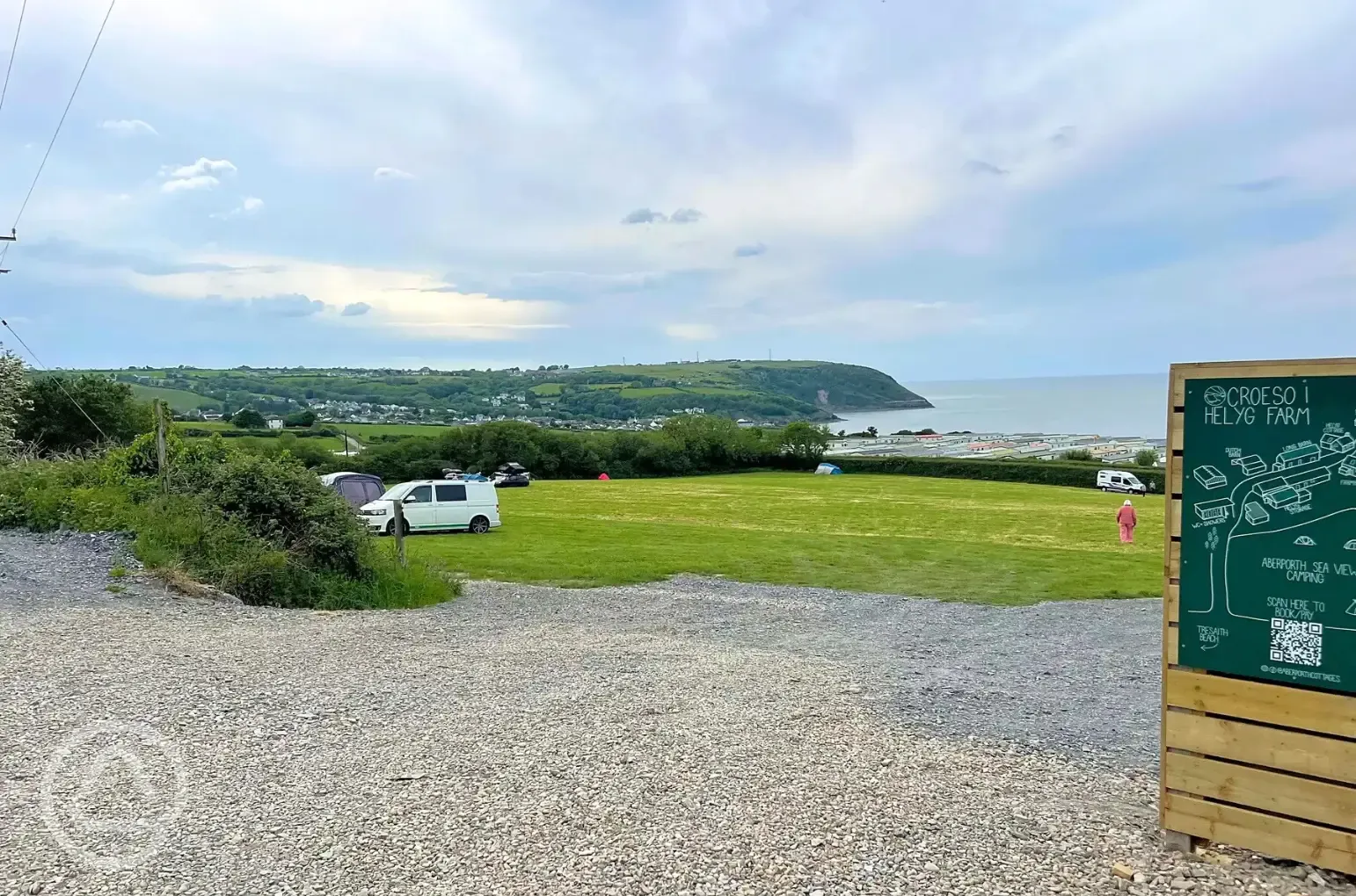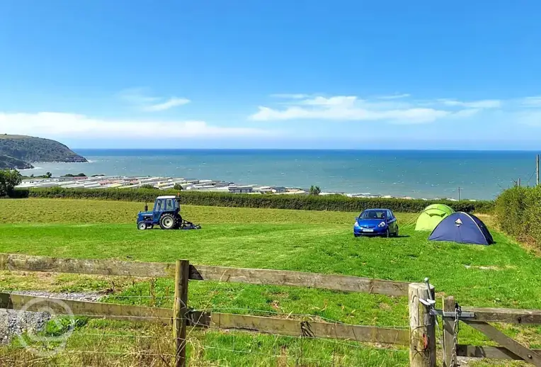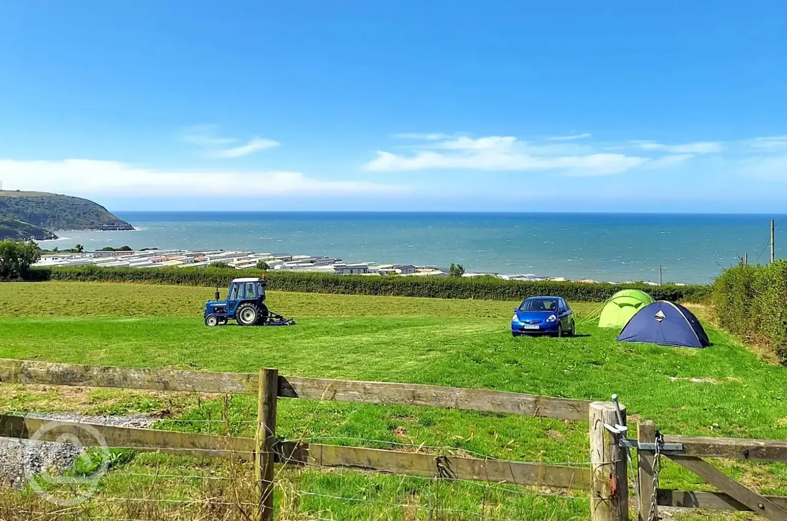 Family and dog friendly non electric grass pitches overlooking Cardigan Bay
