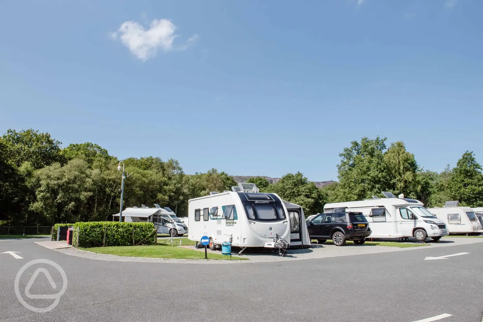 Hardstanding pitches suitable for caravans, motorhomes and trailer tents all serviced with 16-Amp electric.