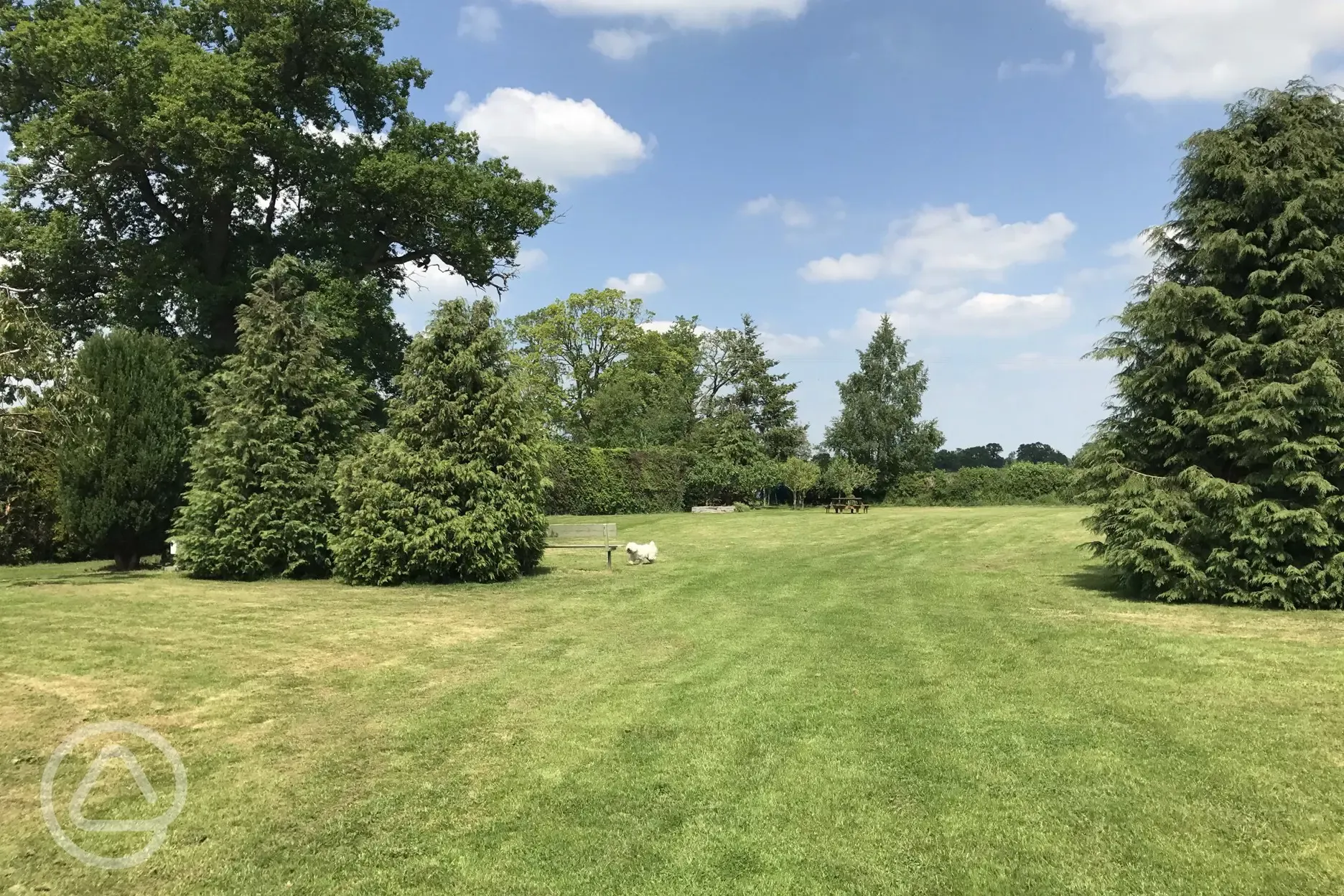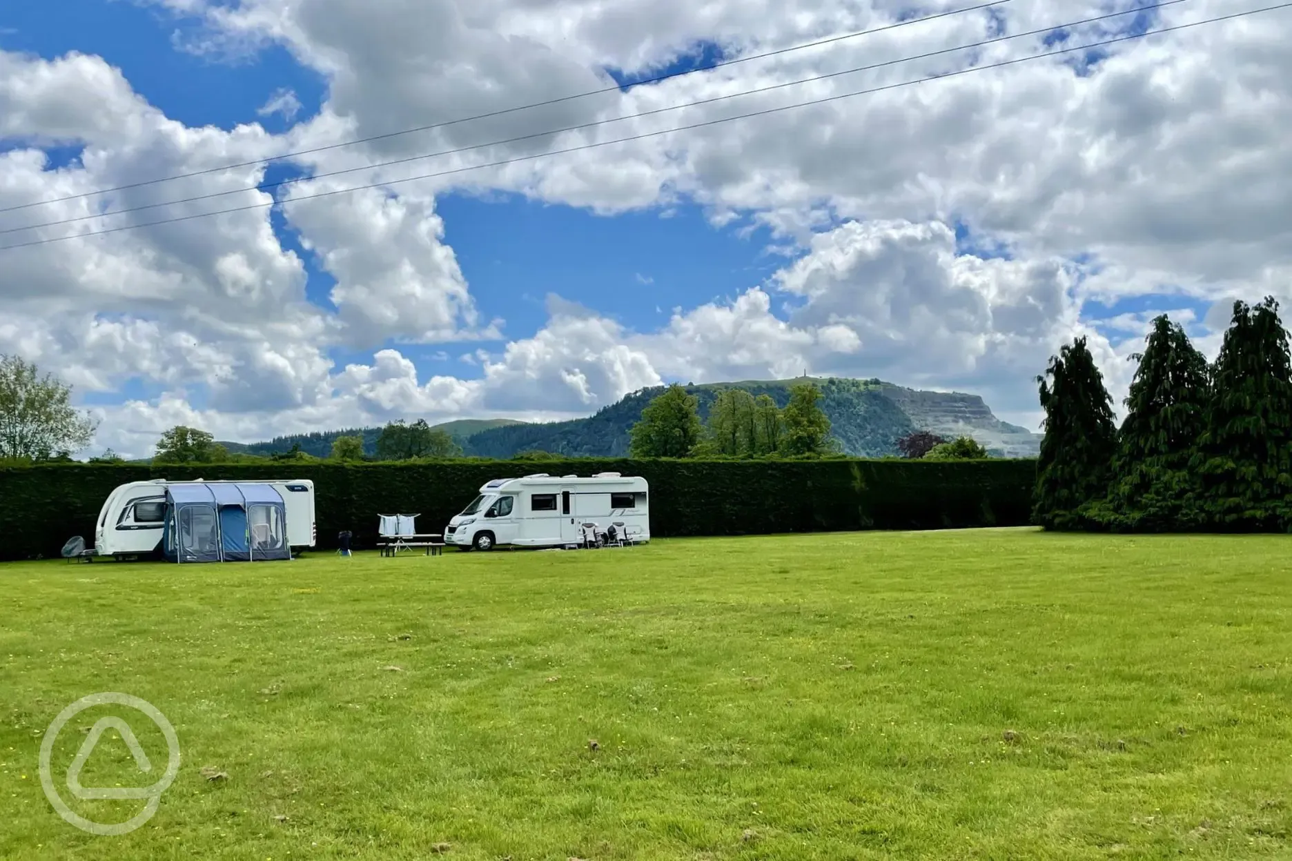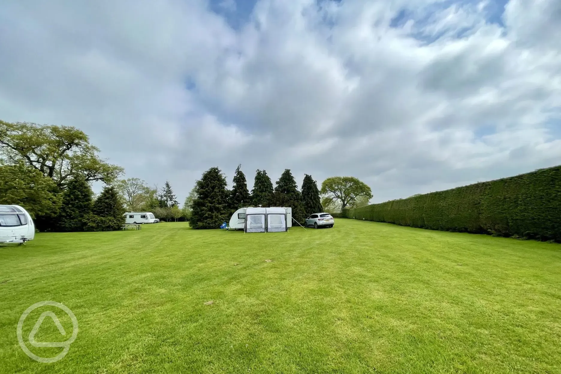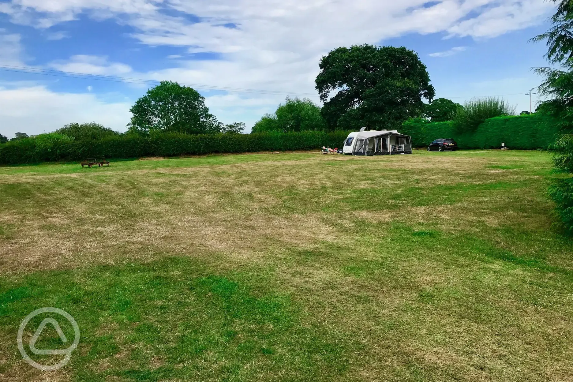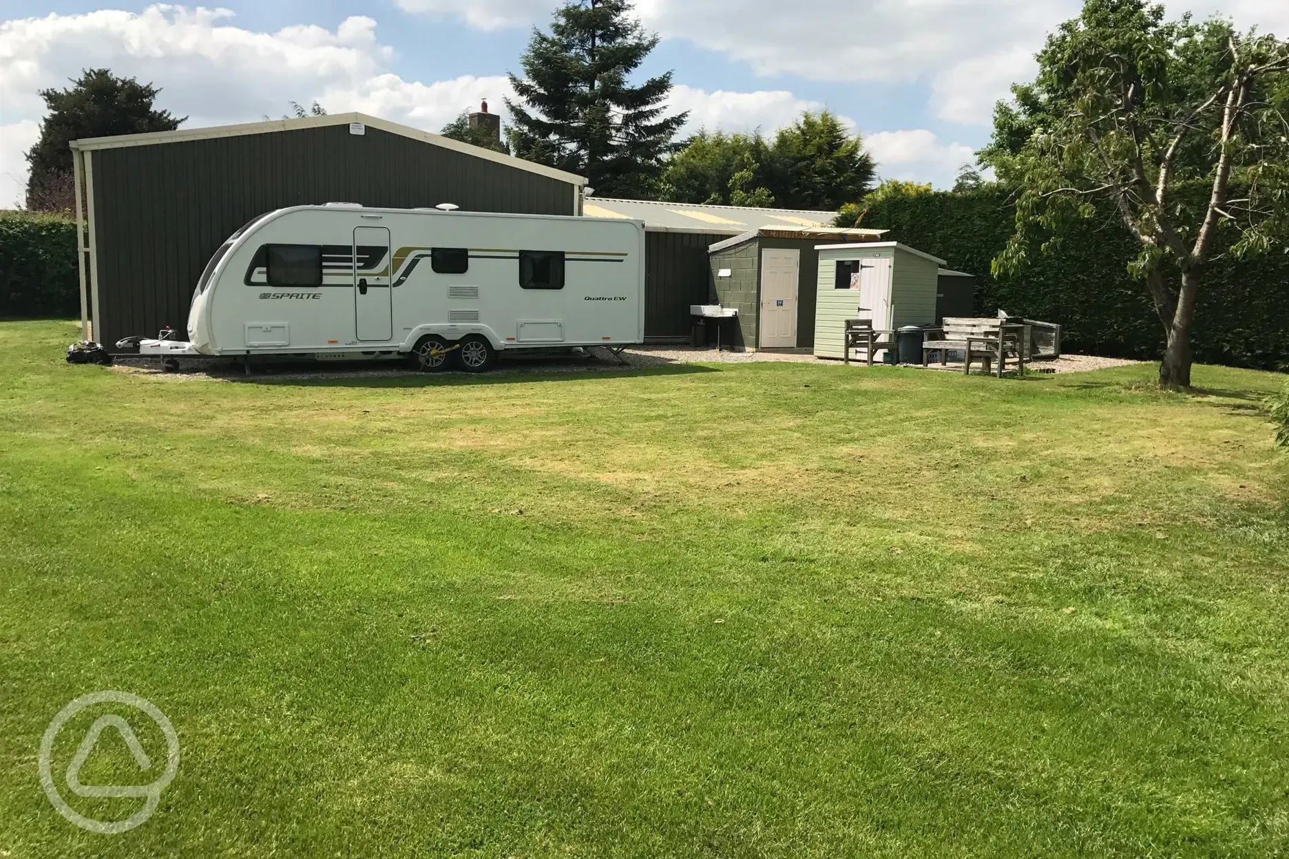 Grass pitches for up to 5 caravans/motorhomes and 10 tents in the paddock. Electric hook ups available.