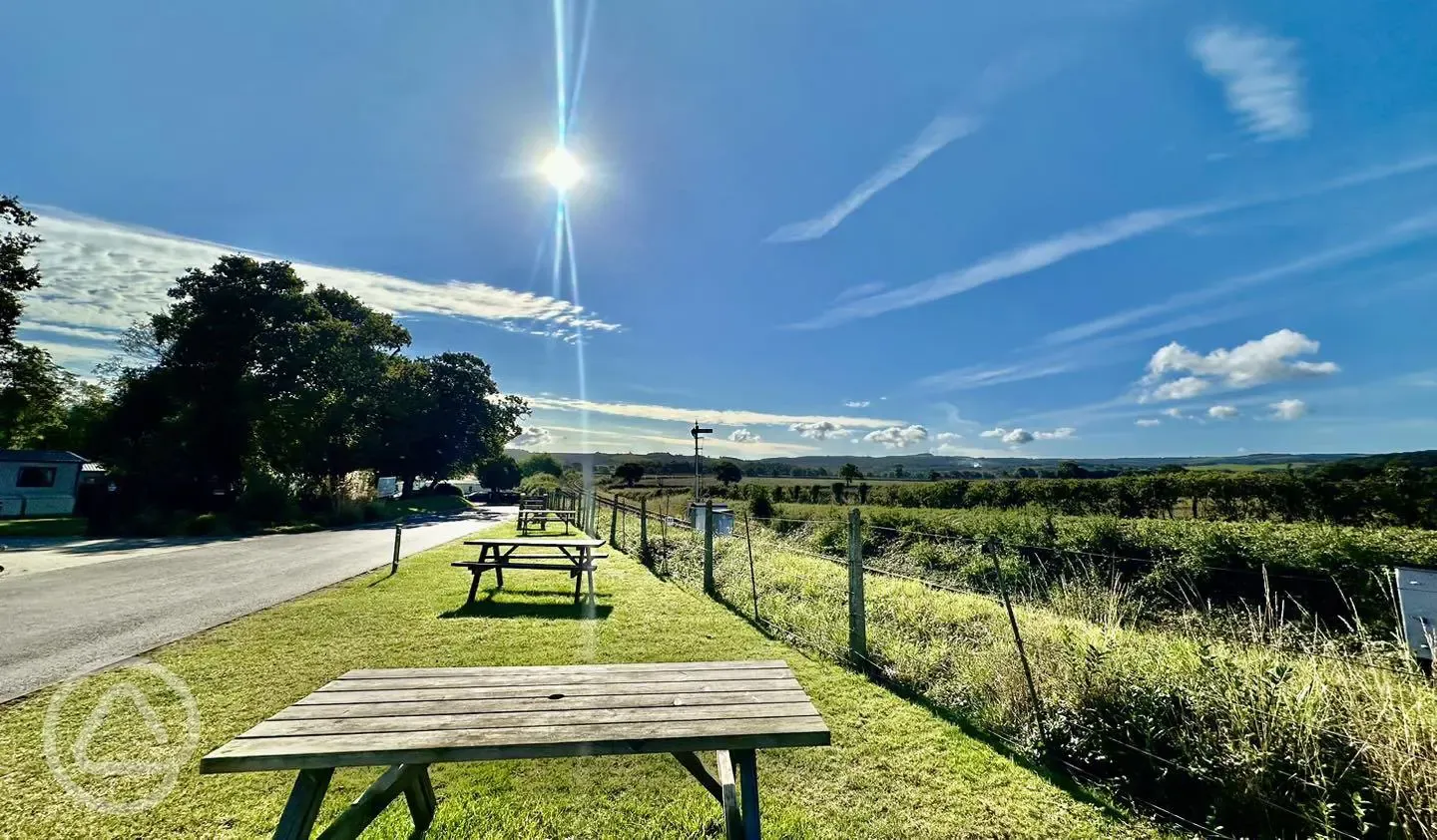 Camping, touring and glamping in Exmoor National Park with sea views and a shop. Ten minutes to Blacklands Beach.