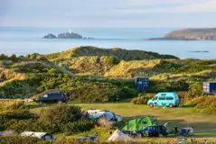 Farm campsite with sea views of Mounts Bay. Within ten minutes of Penzance, St Michael's Mount and Long Rock Beach.