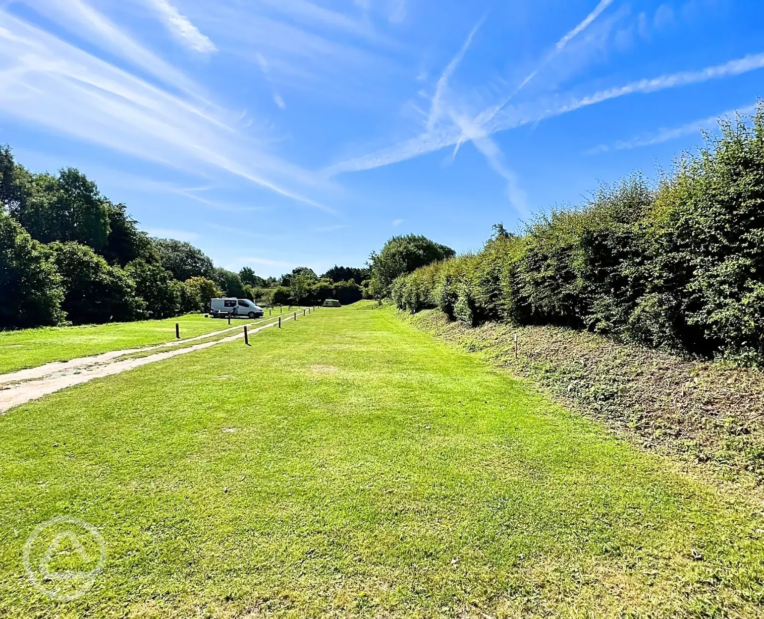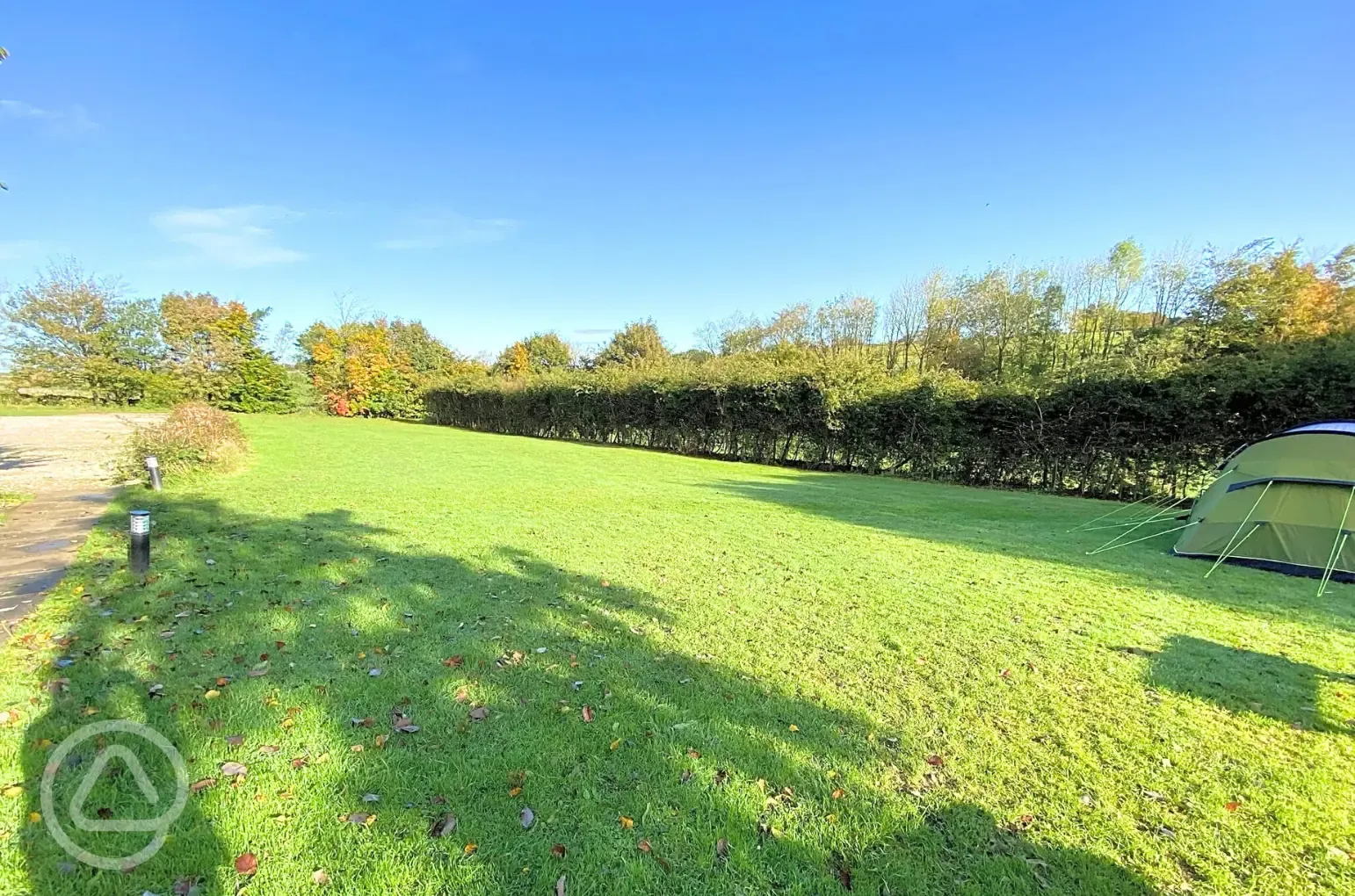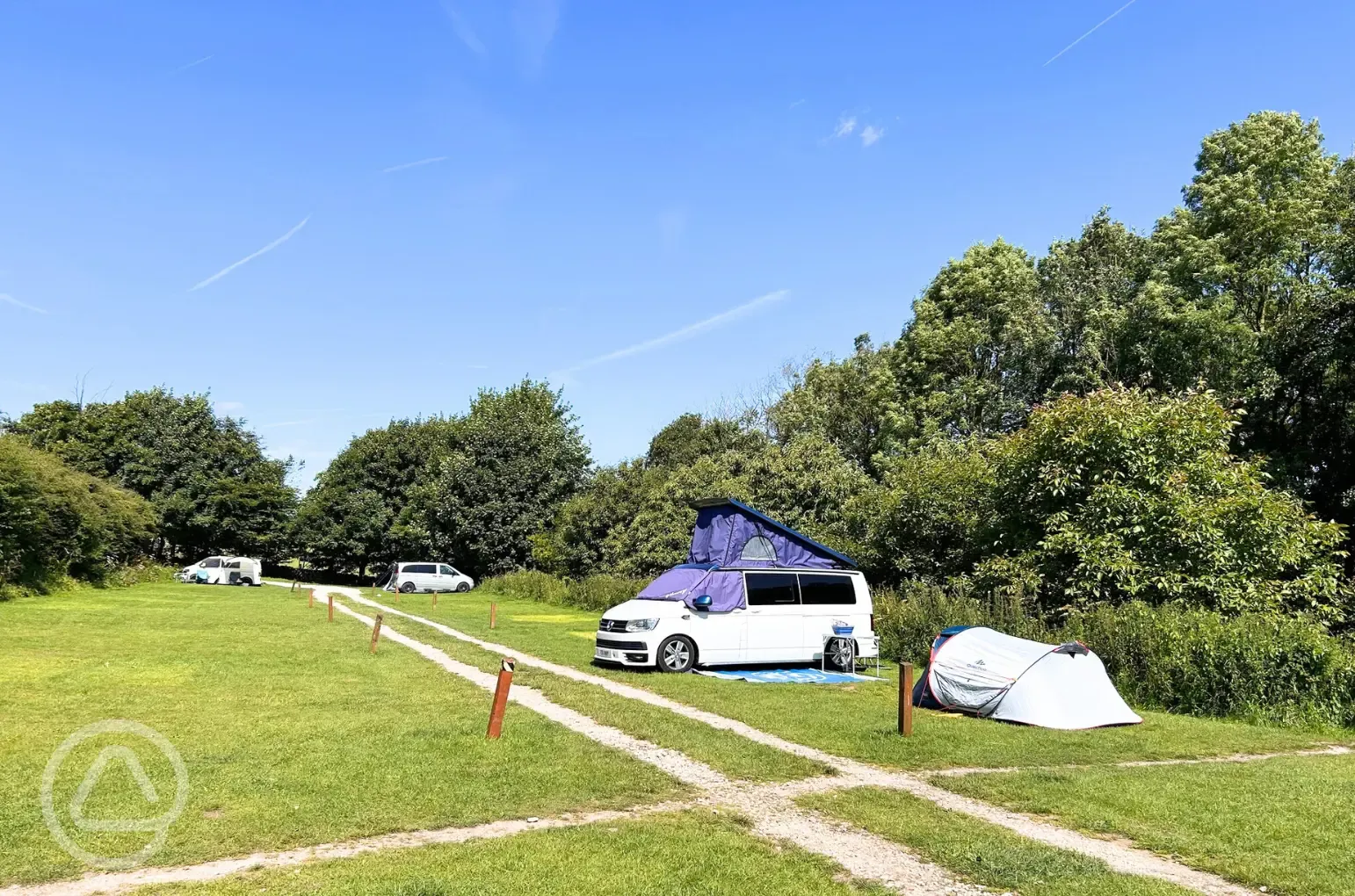 Grass pitches measuring 8m x 10m suitable for tents and small campervans only. Please note that campervans must not exceed 5.3m in length.
