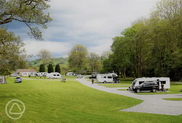 If you're looking for a perfect base to explore Carmarthenshire and beyond, you're in the right place. This five star park is situated just off the A40, which makes exploring easy. You'll be staying in a natural camping area nestled in a valley, where everything is done to ensure the grounds are maintained to the highest standards. You'll have the option of hardstanding serviced pitches, standard grass or hardstanding pitches with or without electric. Caravans, motorhomes and campervans are all welcome. Large groups not accepted.