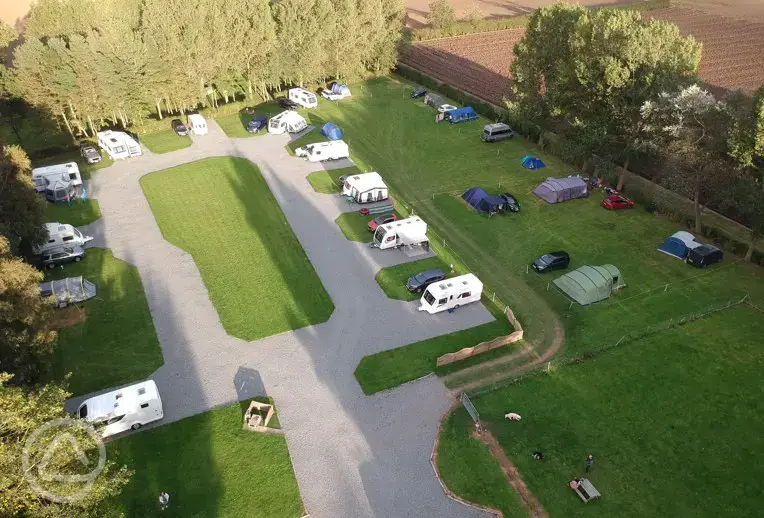 A very tranquil, adult only campsite and is surrounded by eight acres of charming woodland and lake, it's a favourite with the local wildlife. There is a choice of hardstanding or grass pitches for your accommodation including electric hookups. Welcoming all-size caravans, motorhomes, tents, and hammocks for camping in the wood pitches. The site is situated on the edge of the historic village of Great Hatfield and is within easy driving distance from the coast of Mappleton sands and the coastal town of Hornsea. Local Bridleways include Transpennine cycle and walking route into Hornsea. With no light pollution enjoy evenings looking at the clear skies, perfect for stargazing. Dogs are welcome with a large off lead play enclosure for them to streach their paws.